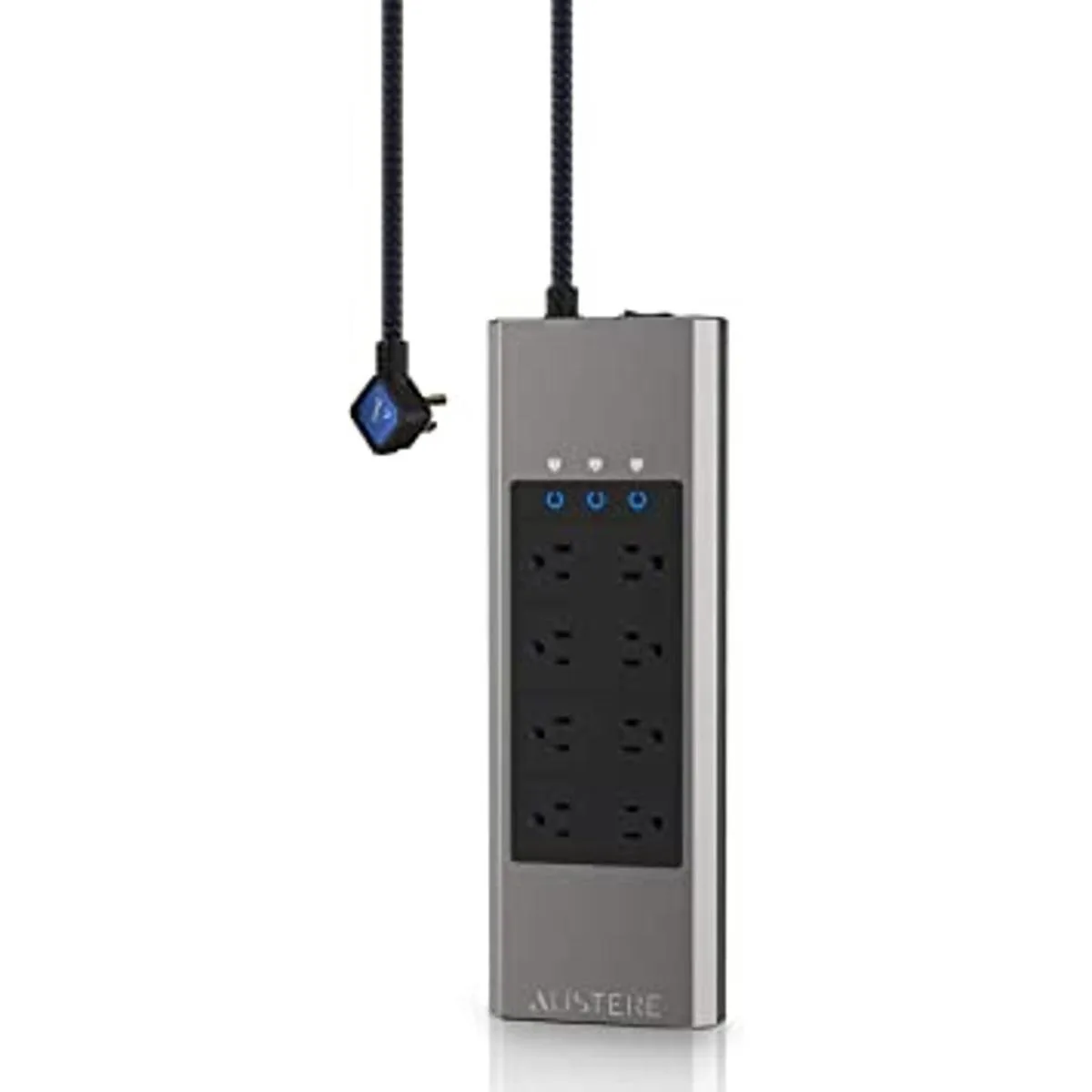 Austere Serie V Power 8Outlet con Omniport USB 3.000 julios, MOV sin llama, protección contra sobrecorriente, tomas SmartFit, cable WovenArmor y garantía de componentes