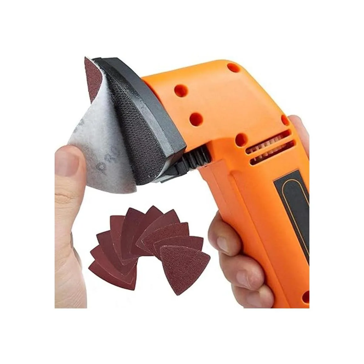 Amplia aplicación: lo mejor para lijado de madera, utiliza grano 40/60/80 para madera rugosa, utiliza grano 120/150/180 para madera general, utiliza grano 240/320/400 para el acabado final de madera, también se puede utilizar para eliminar el óxido, pulir metal, plástico, cuero, goma, vidrio, etc