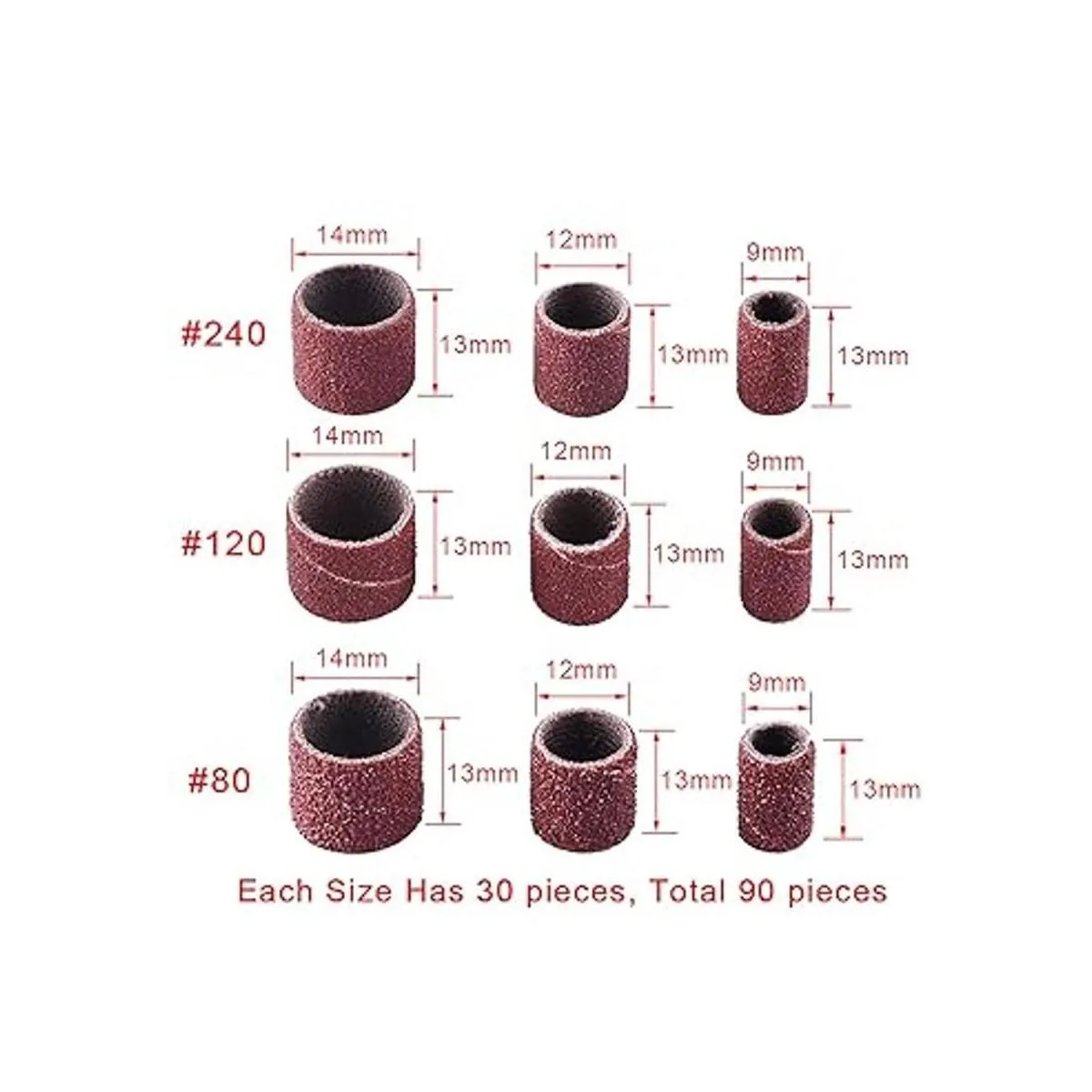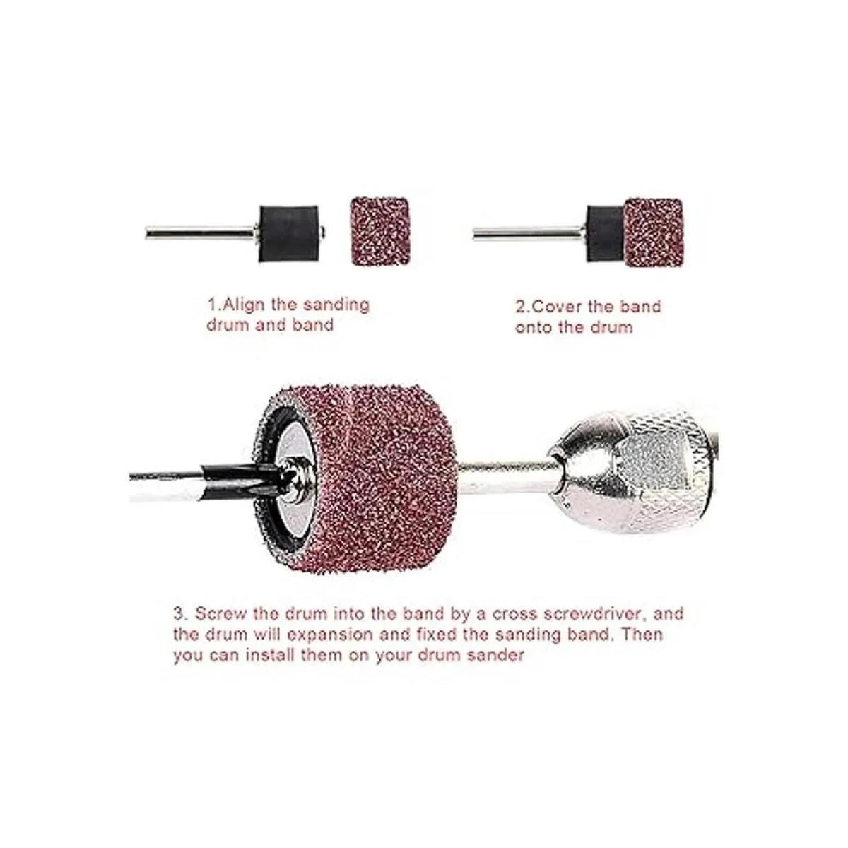 Accesorio esencial de 3 granos: estas bandas de lijado giratorias contienen 3 granos de lijado grano 80, grano 120, grano 240 y 3 diámetros 1/2, 3/8 y 1/4. Hay 20 piezas para cada grano y tamaño