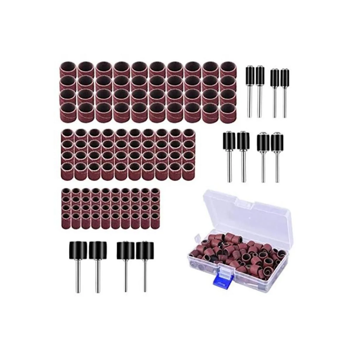 AUSTOR Juego de tambor de lijado de 132 piezas con caja gratis, incluye 120 piezas de lijado de tambor y 12 mandriles de tambor para herramienta giratoria Dremel