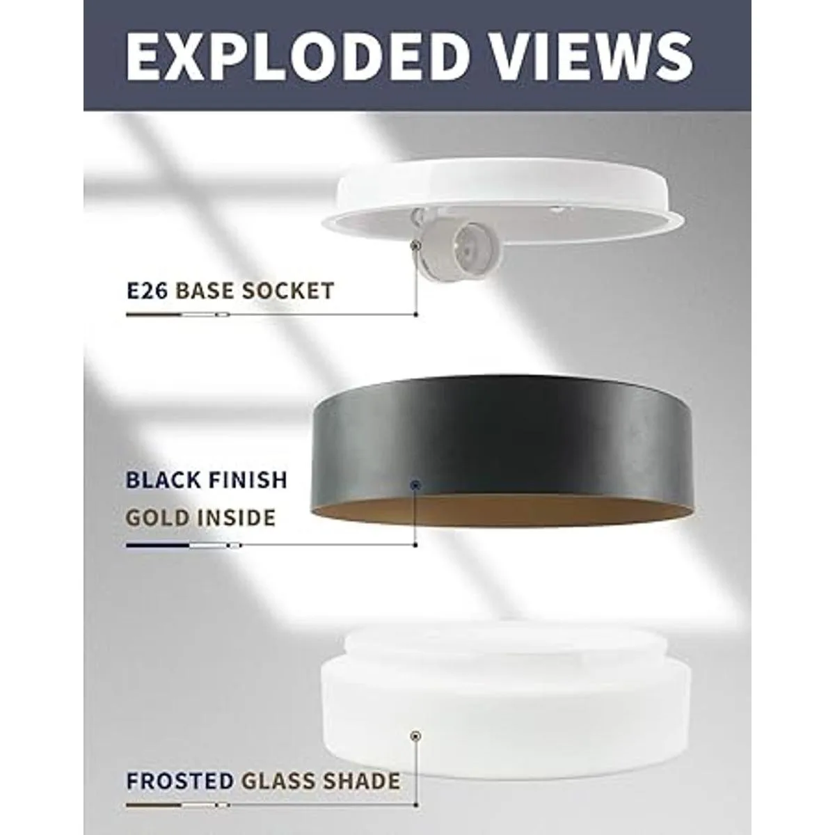 AUTELO Lámpara de techo empotrada, pantalla de vidrio esmerilado de 14 pulgadas cerca del techo en acabado negro, enchufe E26 para sala de estar, pasillo, dormitorio, C3336XS BK