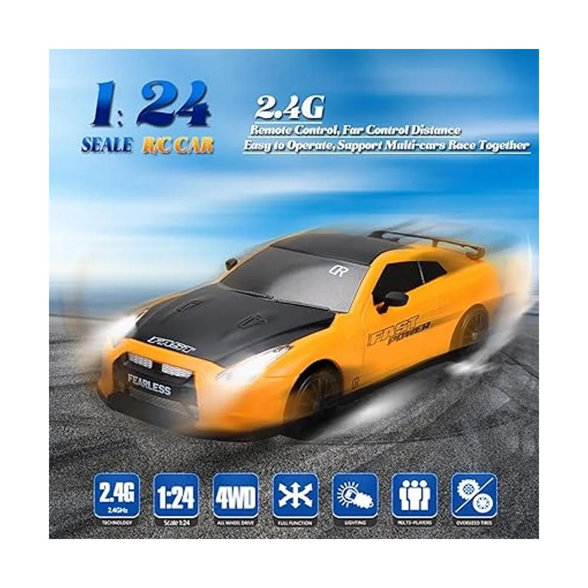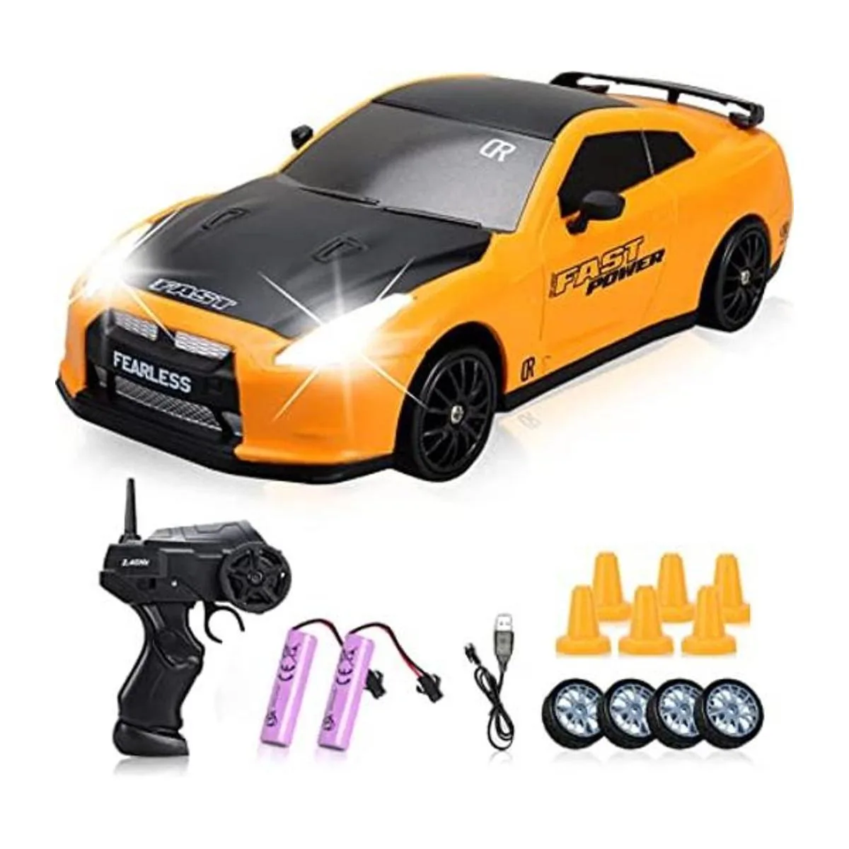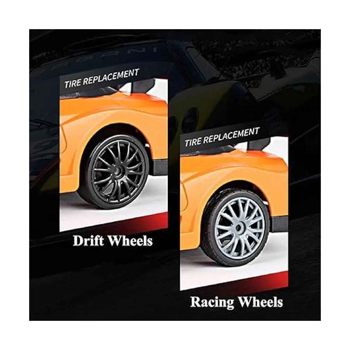 Auto de control remoto 124 de 2.4 GHz 4WD RC Drift, auto recargable de alta velocidad con luces frías, baterías y neumáticos adicionales, regalos de cumpleaños para niños