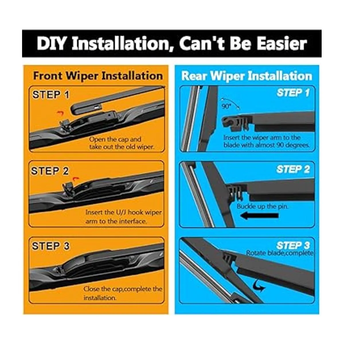 Fácil de instalar: rápido y fácil de instalar. Se adapta perfectamente a tu coche, como las piezas originales. Se instala en el brazo del limpiaparabrisas mediante J/H.