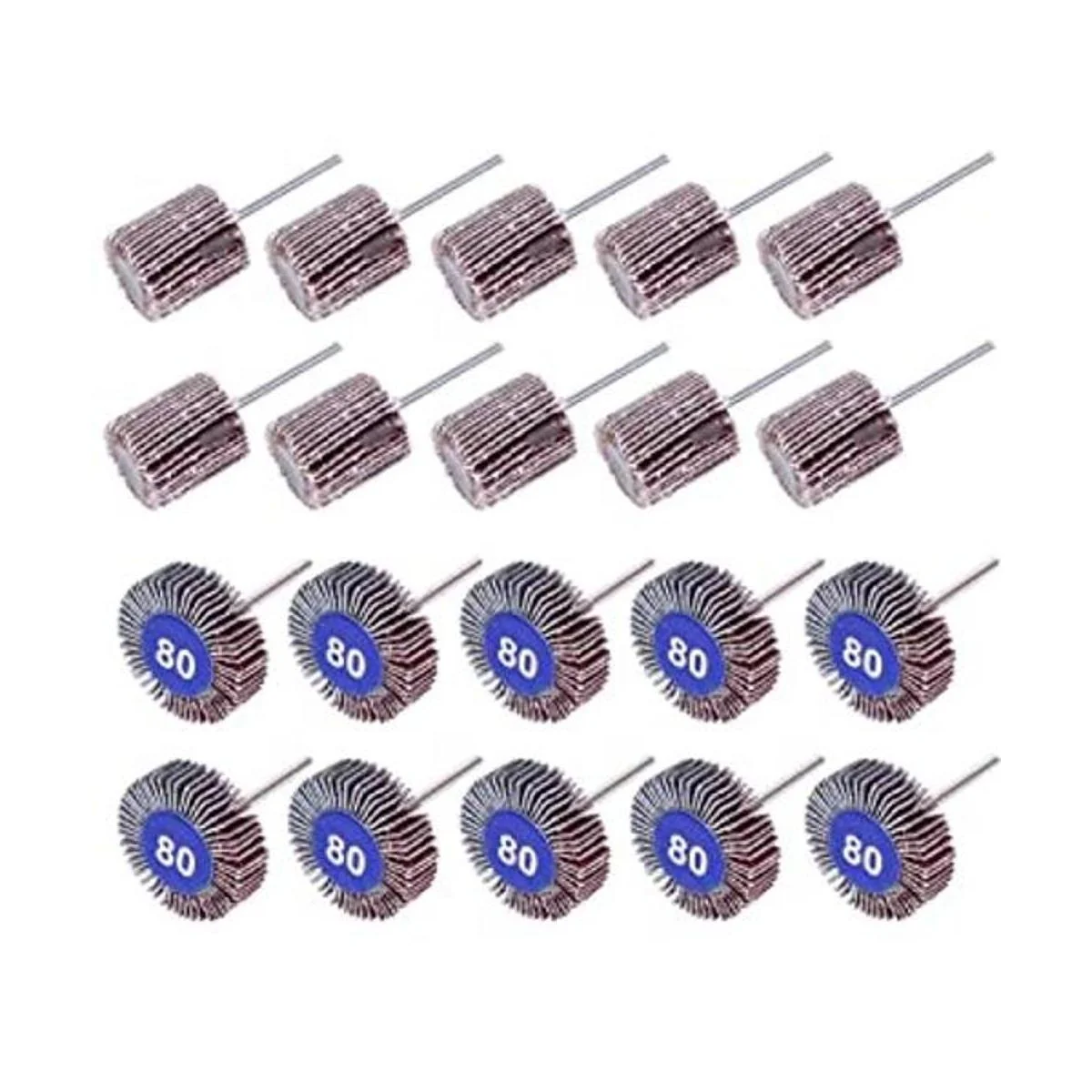 AUTOTOOLHOME 20 lijadoras abrasivas de rueda de solapa 80, grano de 18 pulgadas, diámetro del vástago de 1.260 in, 38 pulgadas de grosor y 1 pulgada abrasiva, cabezal de lija, herramienta giratoria para pulir y pulir