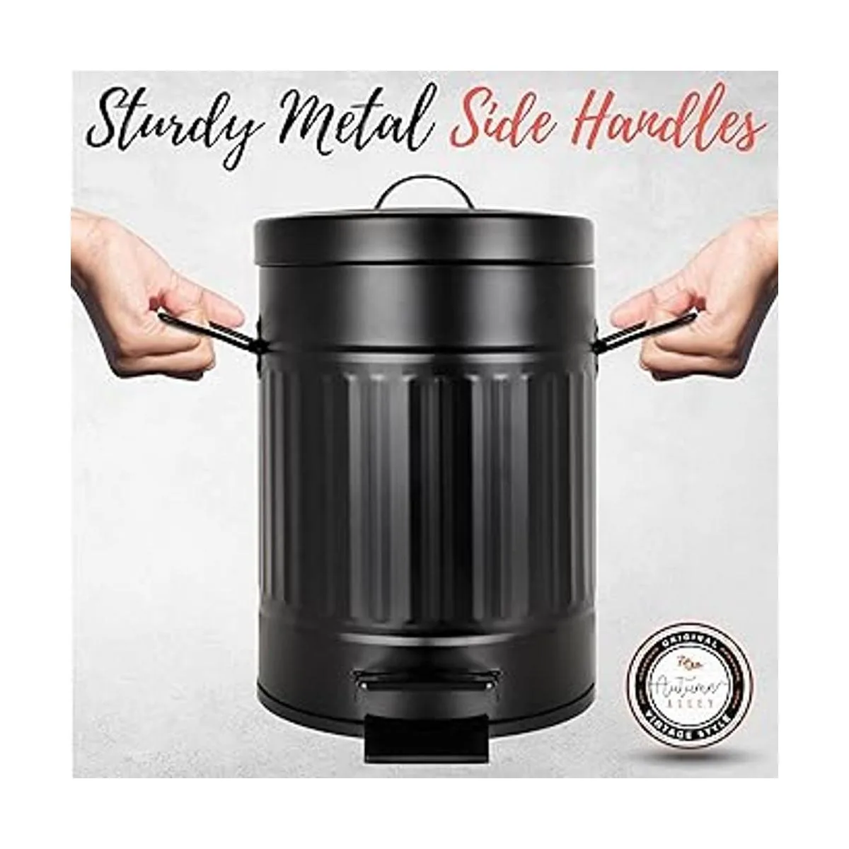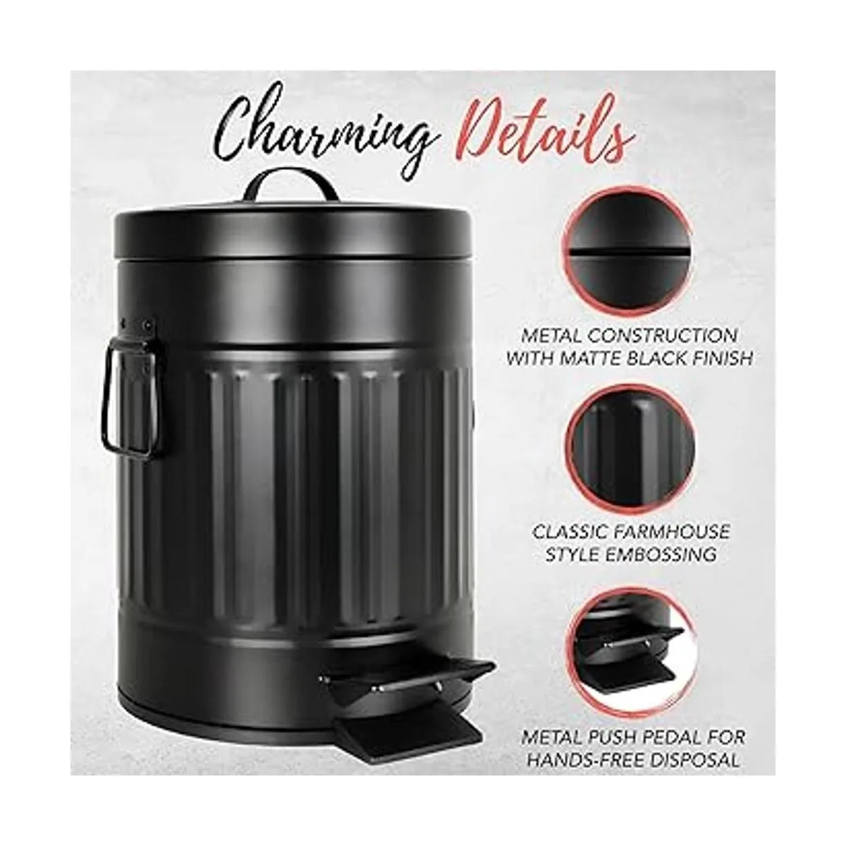Autumn Alley Bote de basura negro para baño de granja con tapa, pequeño cubo de basura de baño de 1.3 galones, encantadora decoración de baño de granja Accesorios de baño de granja