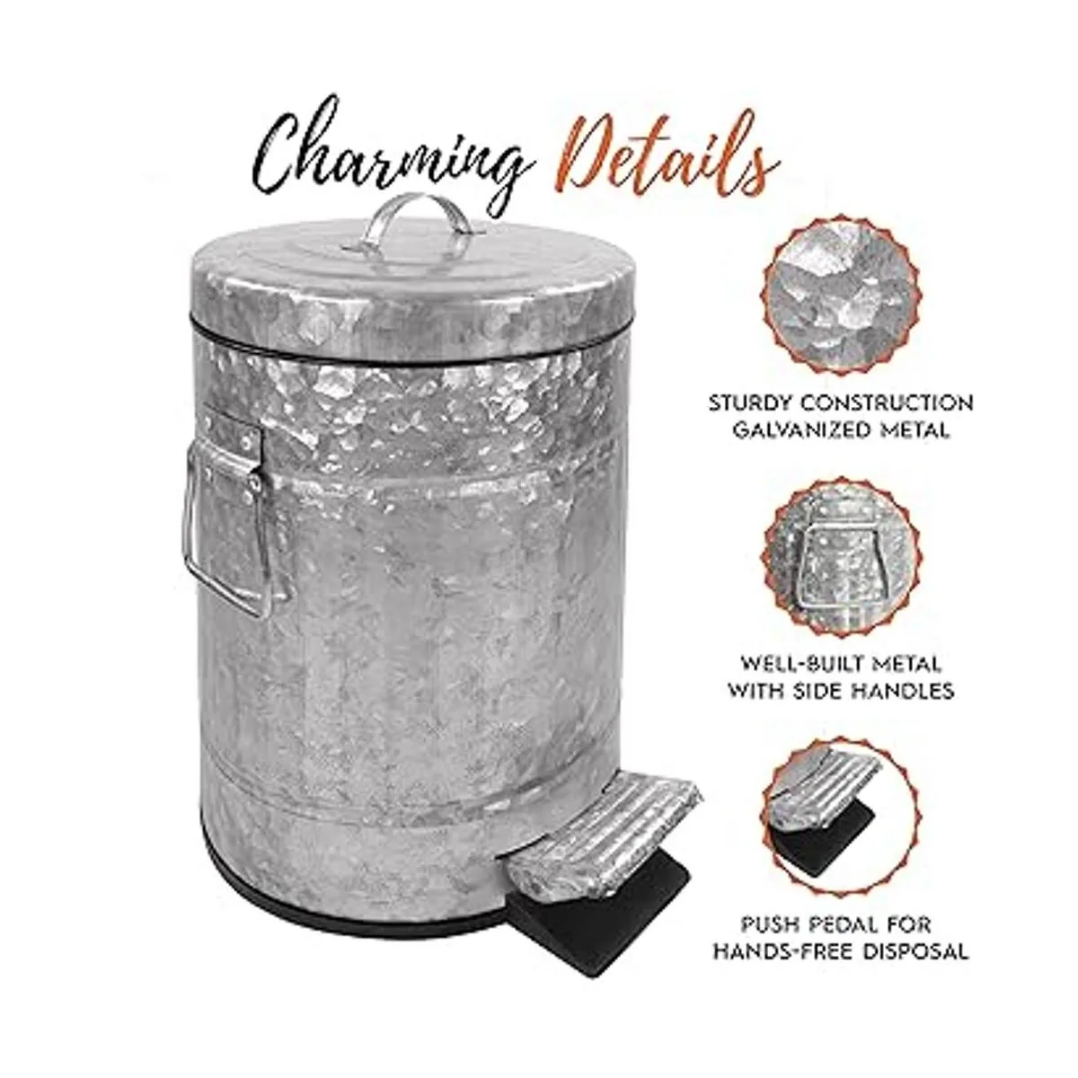 Autumn Alley Bote de basura pequeño galvanizado con tapa, 5 litros, 1.3 galones de baño, encantador para decoración de baño de granja y decoración rústica de baño