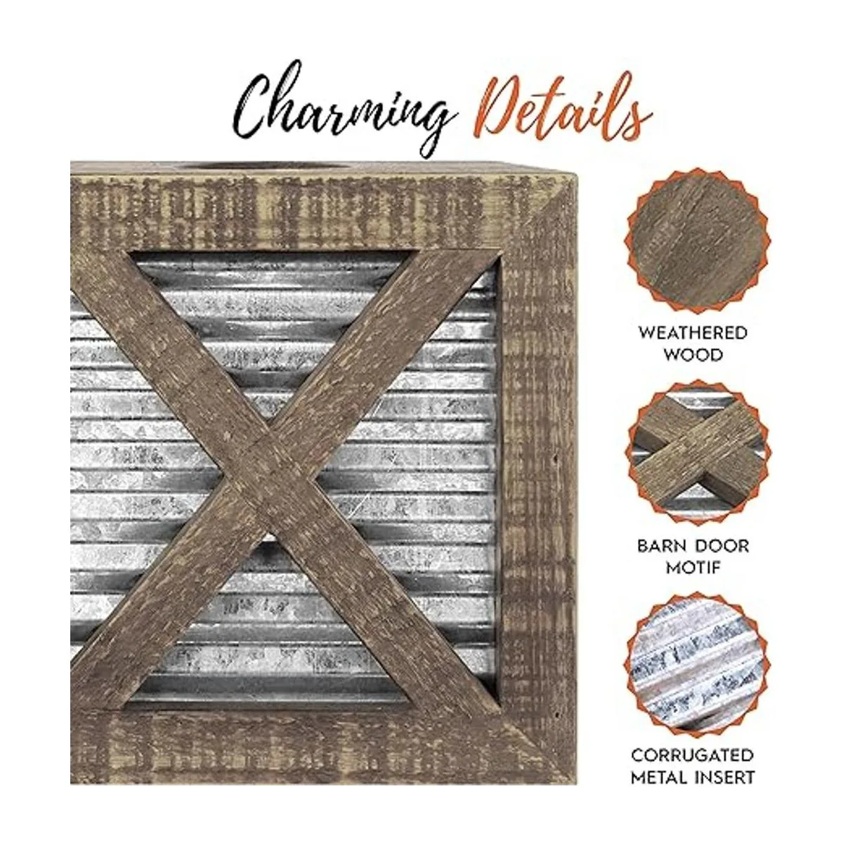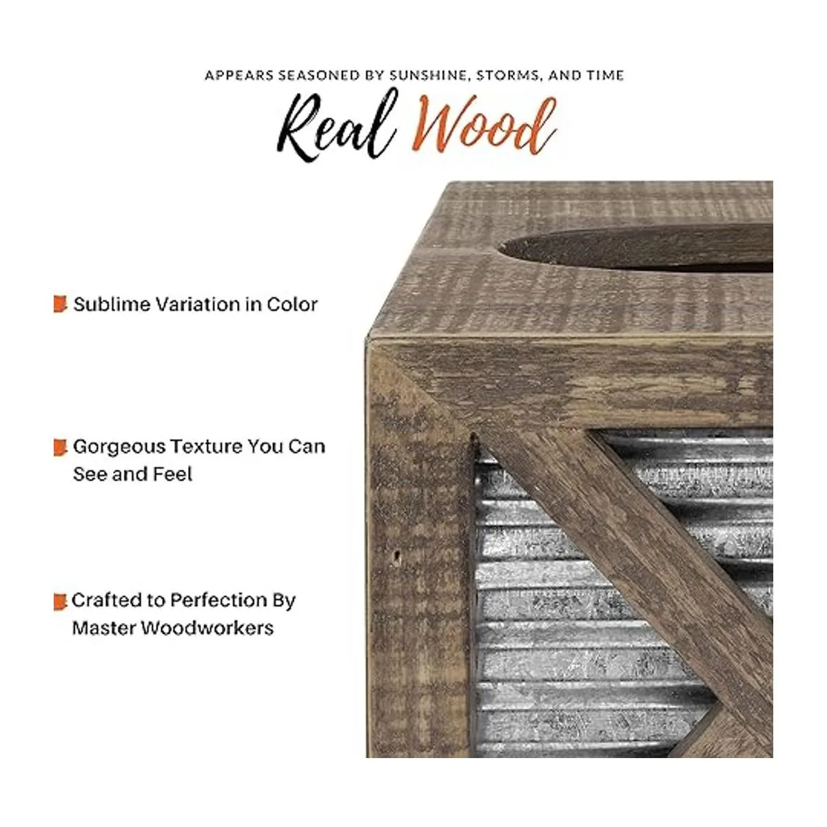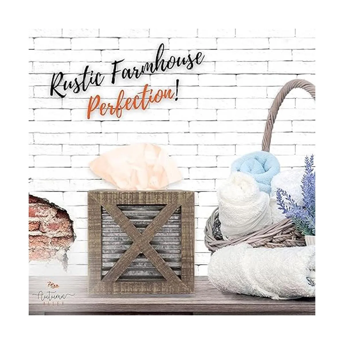 Autumn Alley Funda cuadrada rústica para caja de pañuelos Accesorios de baño de granja Soporte de pañuelos rústico para decoración de baño Cubierta de caja de pañuelos de madera con decoración galvanizada