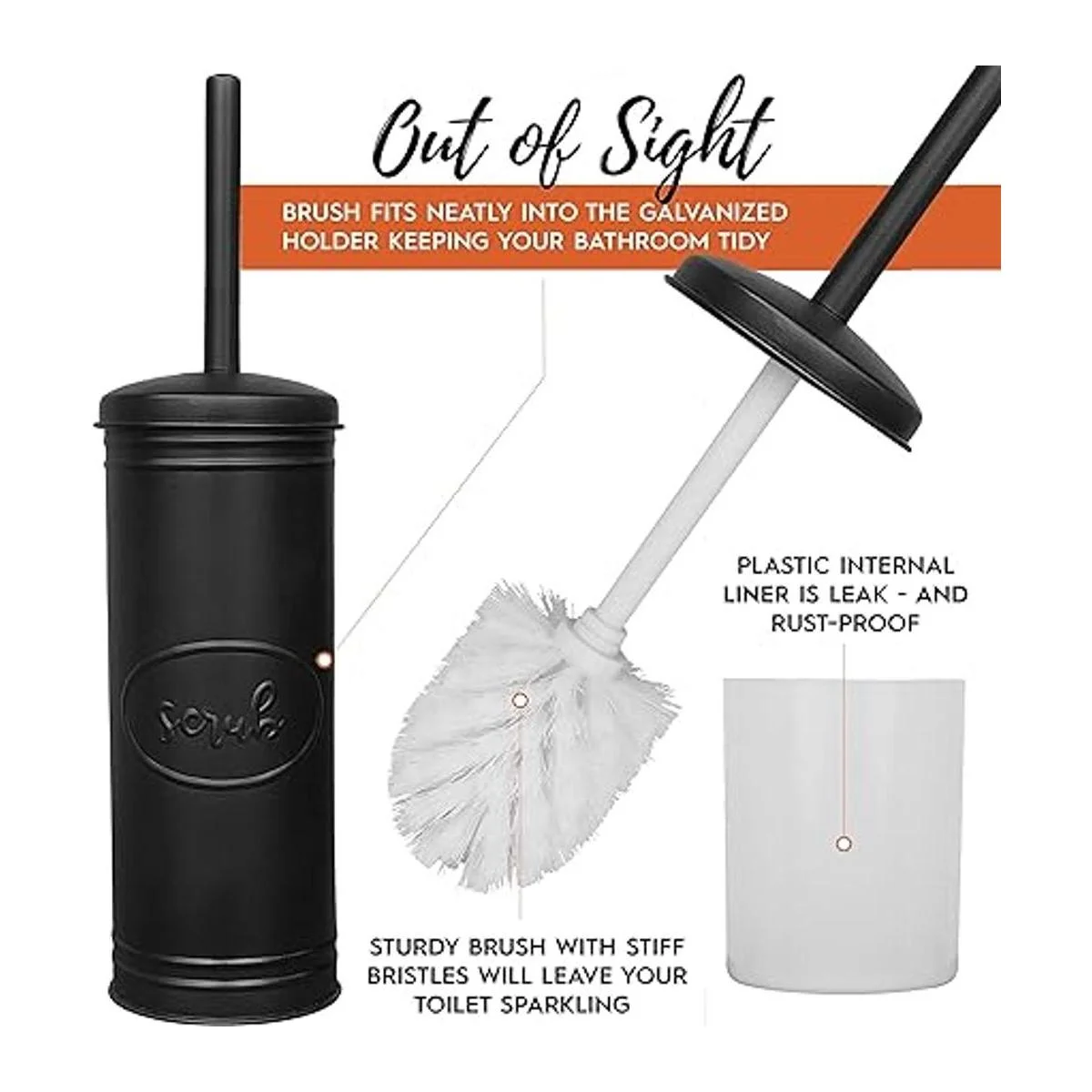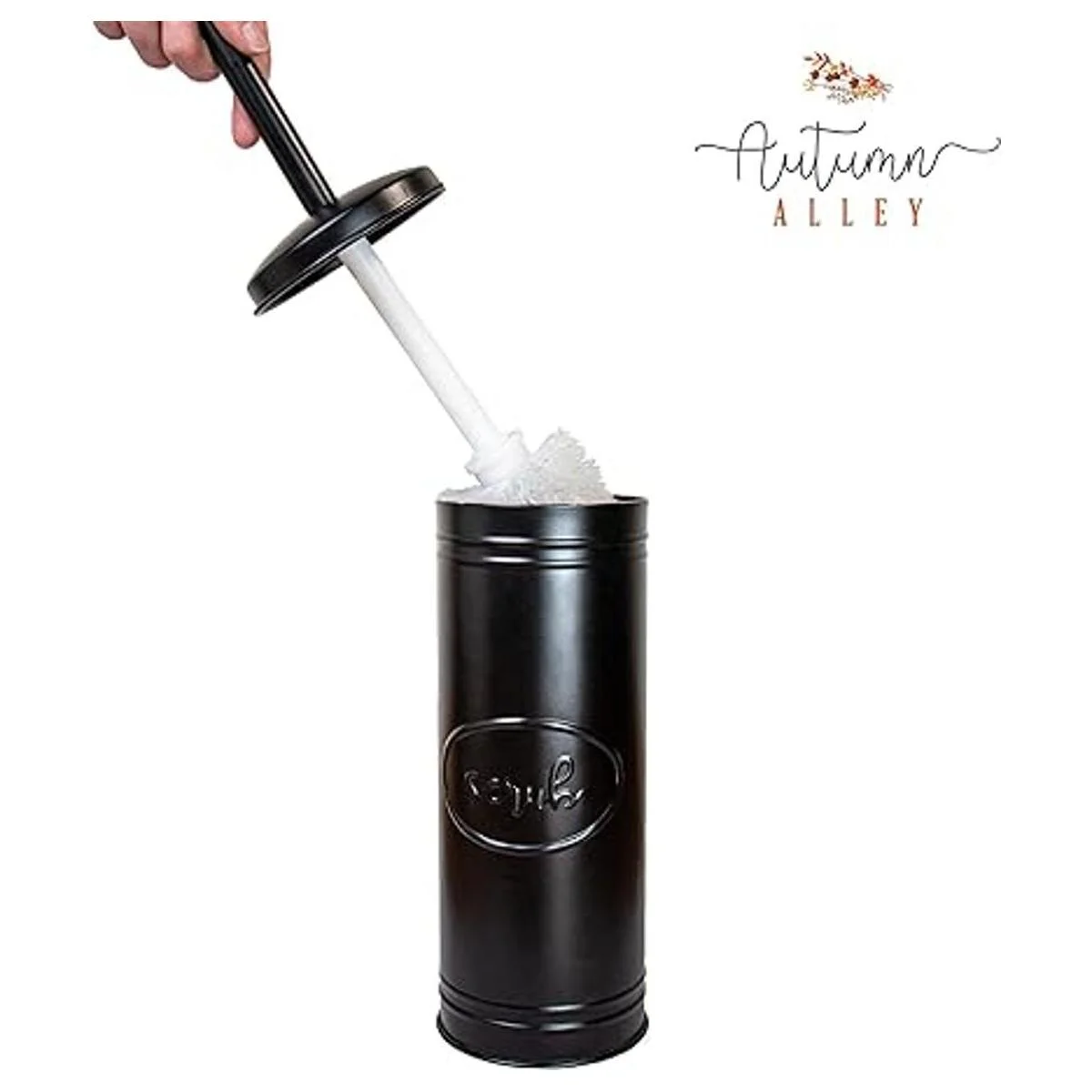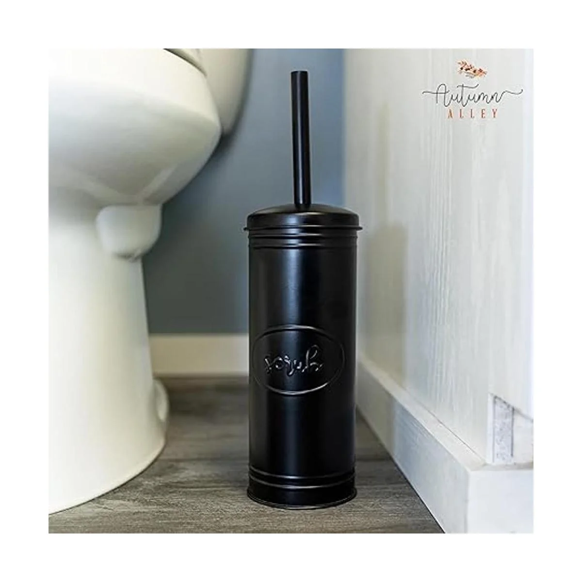 Autumn Alley Juego de escobillas y soporte de baño de granja Limpiador de inodoro rústico negro Decoración moderna de baño de granja