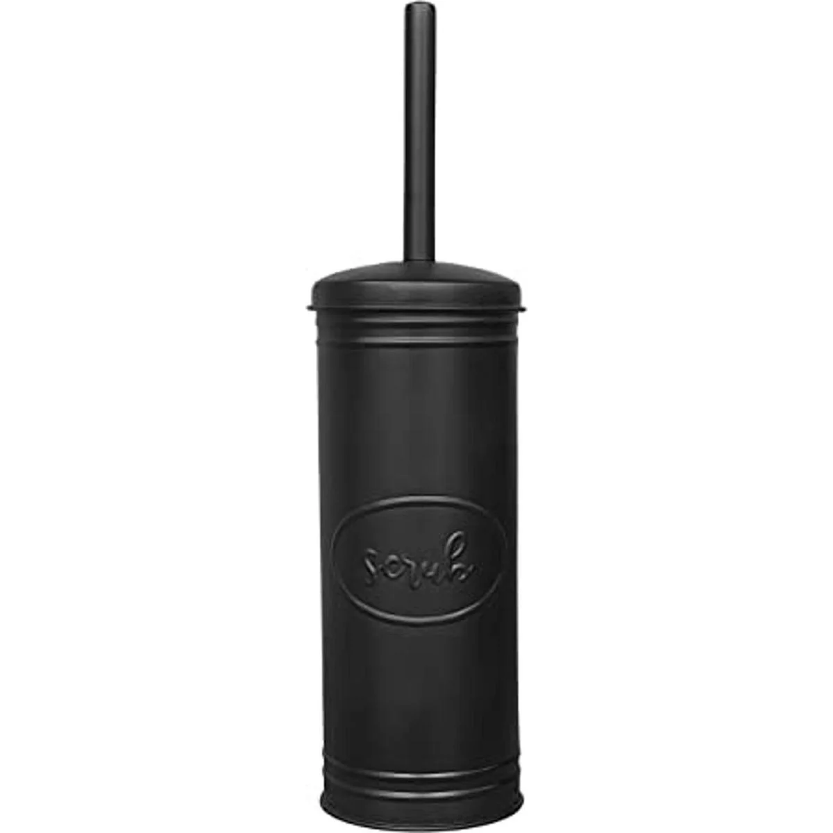 Diseño moderno de granja Con un exterior negro clásico sublime, este juego de escobillas de inodoro y soporte para baño tiene anillos icónicos en relieve, un mango de color coordinado, una etiqueta atractiva que dice exfoliante en una fuente cursiva para un acento impresionante, y se mantiene firmemente con su diseño estable. La mejor decoración de baño de granja