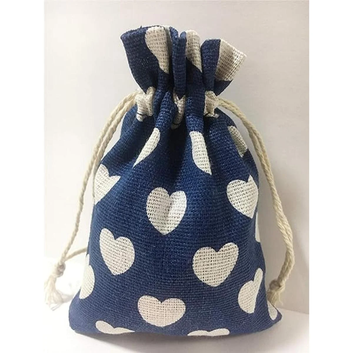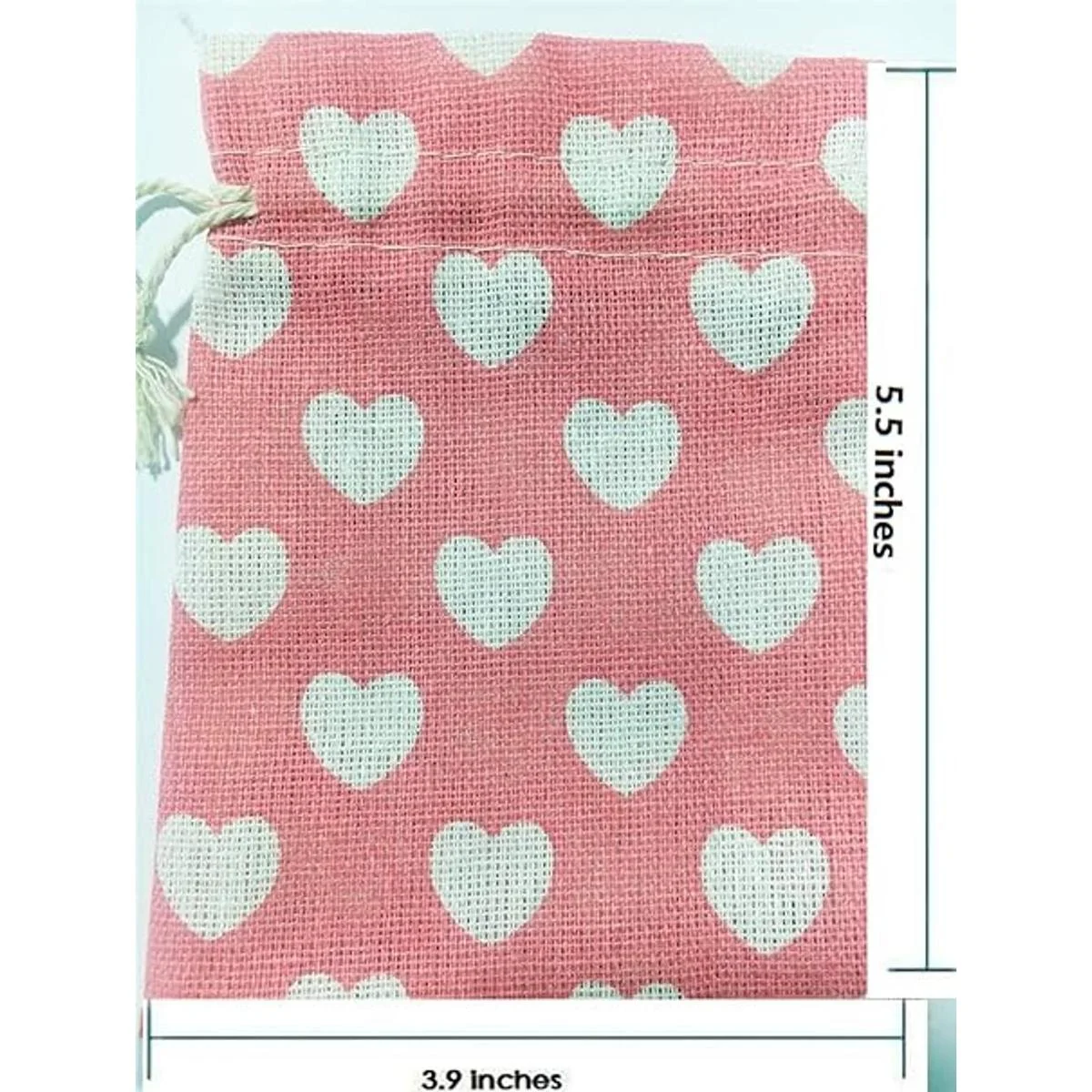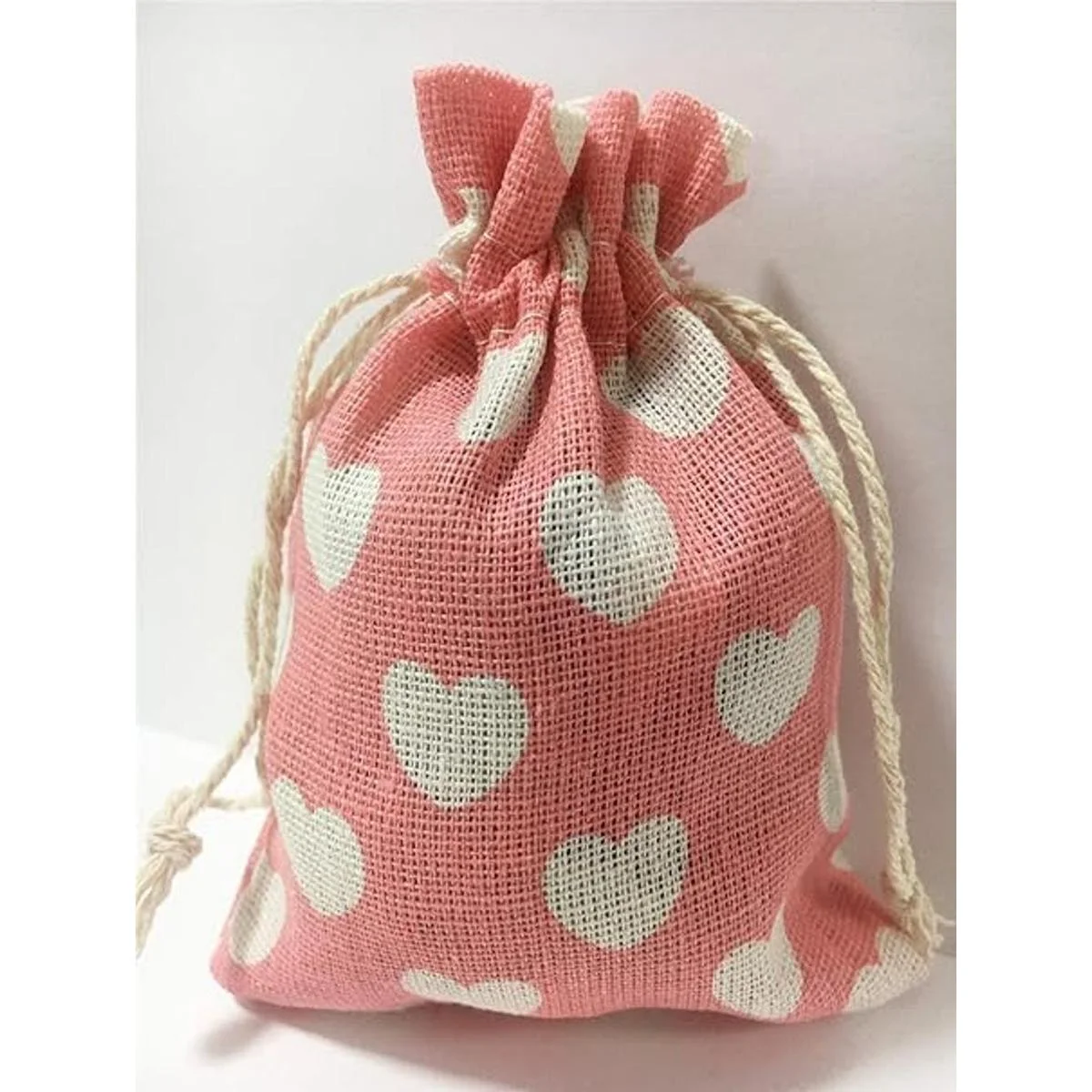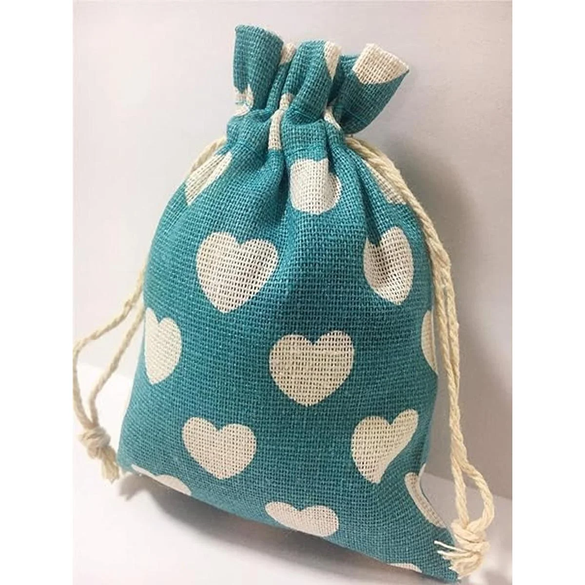 Diseño único: colorido estampado de corazón, el diseño de cordón hace que estas bolsas de arpillera sean más fáciles de sujetar para evitar que los objetos se pierdan.
