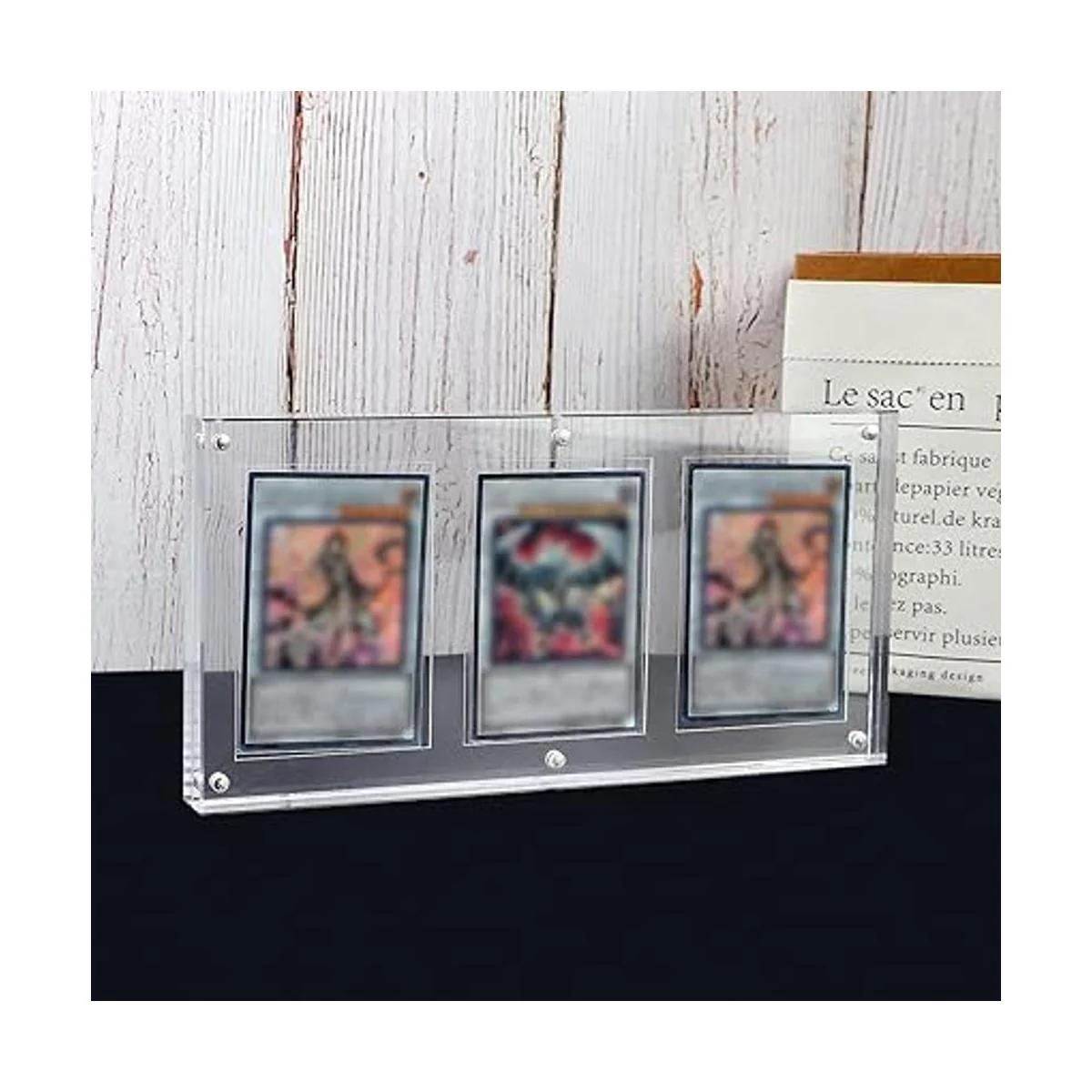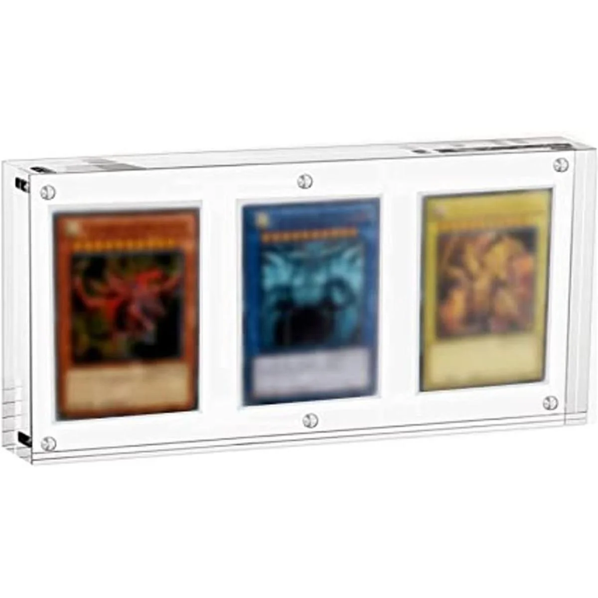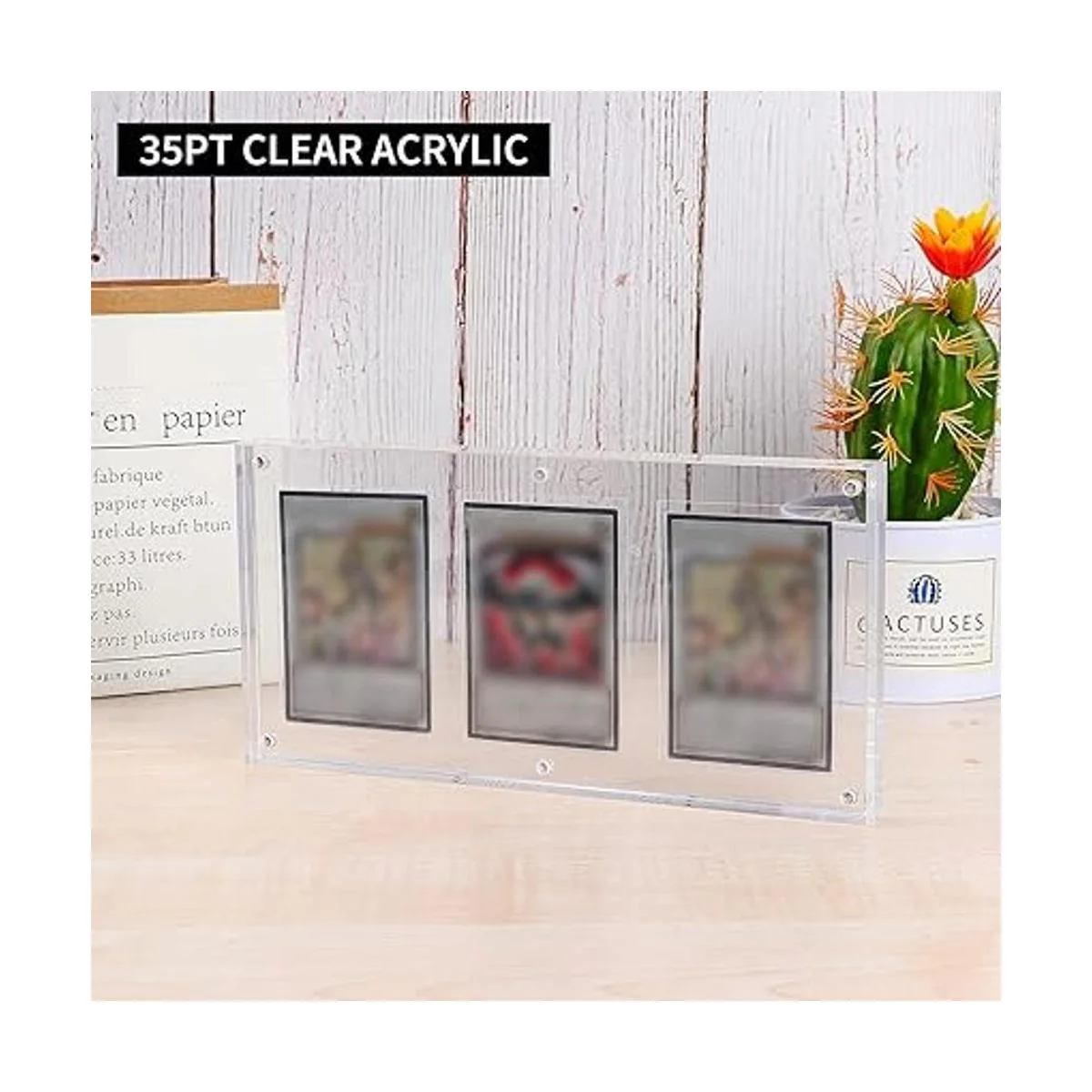 Auveach Paquete de 1 marco acrílico 35PT TCG triple para tarjetas, con un toque abierto, pantalla magnética, soportes transparentes para tarjetas, soportes transparentes para tarjetas Triple 1 paquete, 0.787 in