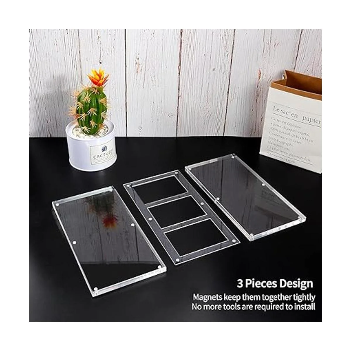 Material de alta calidad: el marco está totalmente hecho de bloques acrílicos gruesos y pesados. Con alta definición y resistencia a los arañazos. Puede mantener tus preciosas tarjetas a salvo del agua y el polvo. Los marcos vienen con una película protectora antiarañazos durante la entrega.