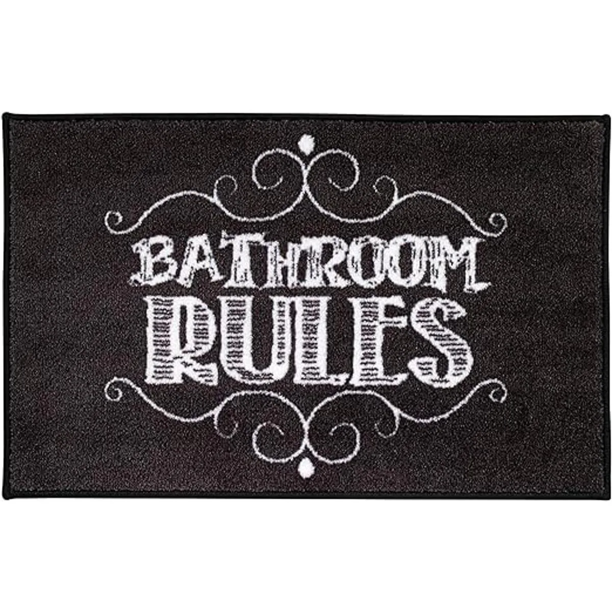 Atención al detalle: trata tus pies con la lujosa alfombra de baño de nailon con impresión de tiza Avanti Chalk It Up. Sobre un fondo negro de pizarra, Bathroom Rules está escrito en blanco como tiza. Como parte de un juego de baño, esta alfombra de baño de estilo vintage es un complemento divertido para el baño. Gracias a su base de látex antideslizante, esta alfombrilla de baño se mantiene firmemente en el suelo, incluso cuando está mojada.
