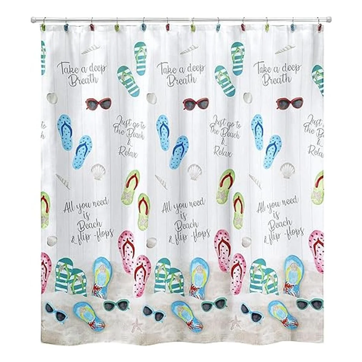 Hecho de 100 poliéster duradero, la cortina de ducha de modo playero, con sus adorables diseños alegrará instantáneamente tu ducha.