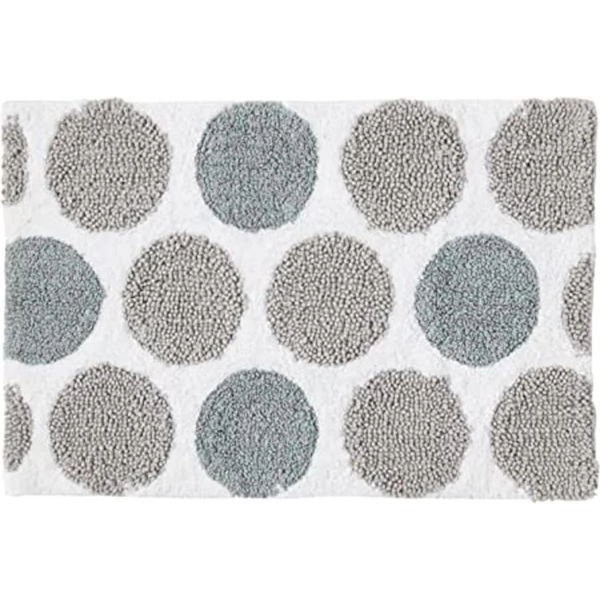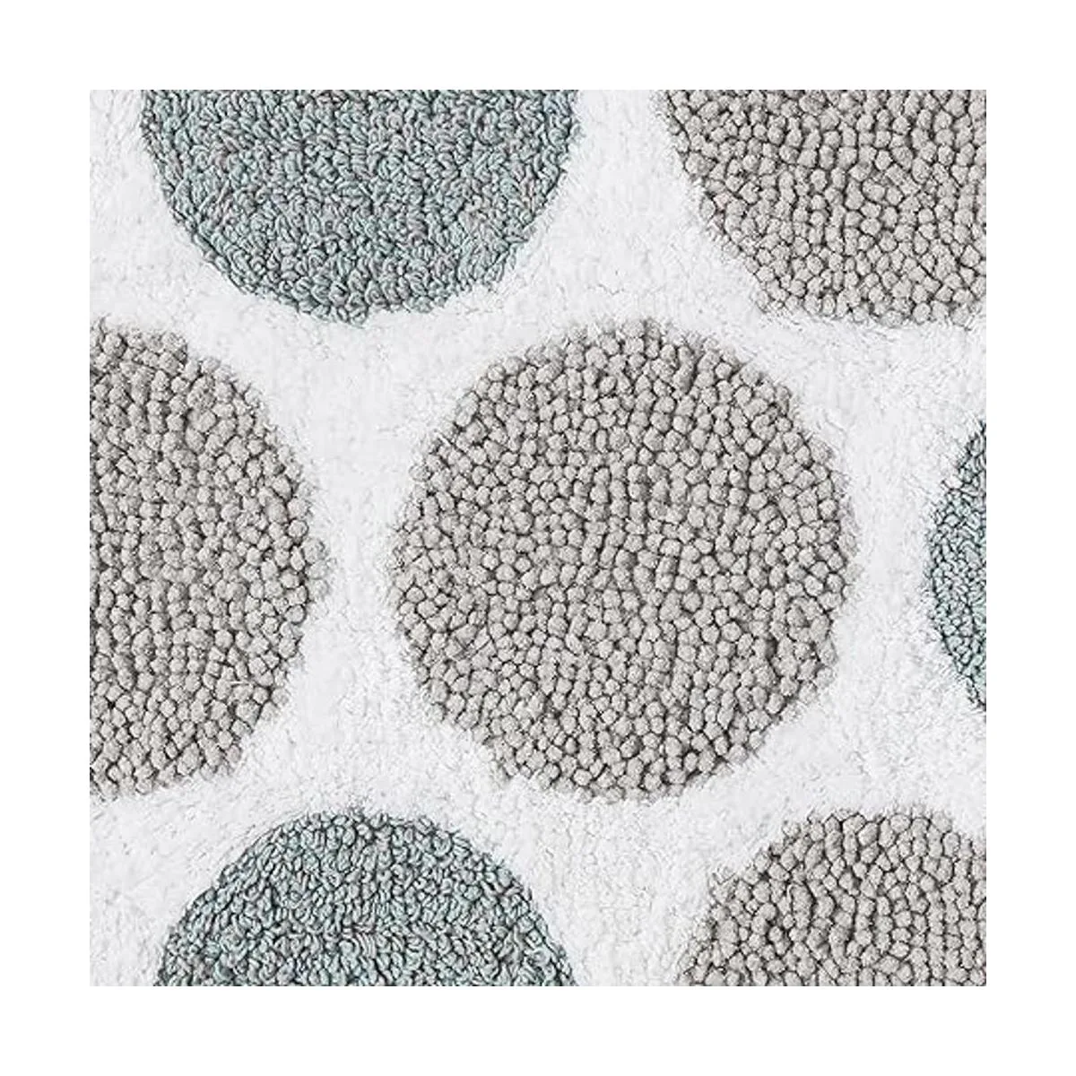 Atención al detalle: hunde los dedos de los pies en esta lujosa alfombrilla de baño suave. La alfombra de baño Avanti con círculos punteados blancos con gris y azul de algodón copetudo dará vida a tu baño.