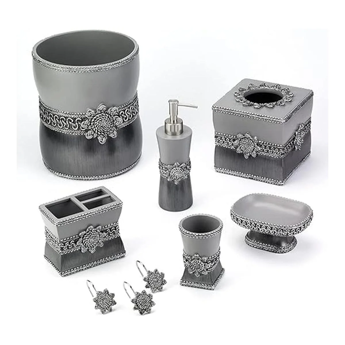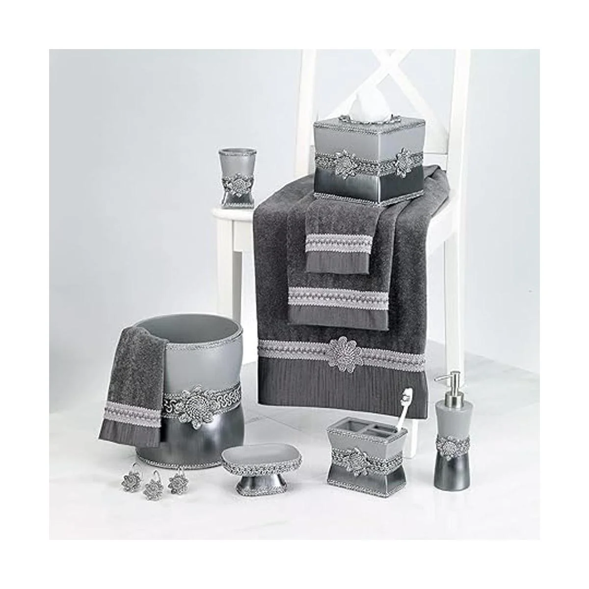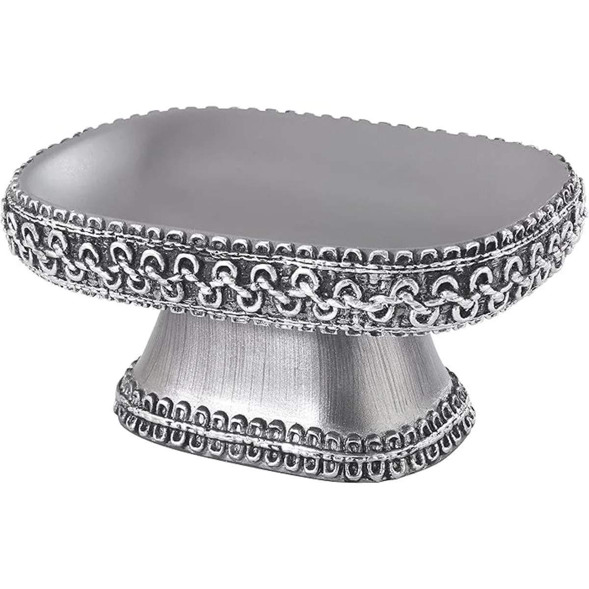 Avanti Linens Medallón Trenzado Plata y Jabonera de resina gris