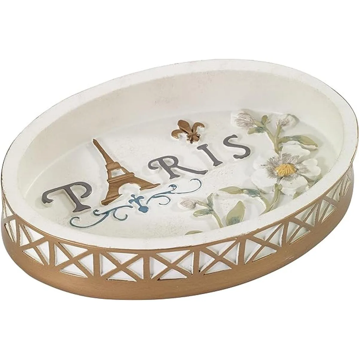 Estas encantadoras jaboneras son parte de la colección Paris Botanique, que tiene toallas y otros accesorios de baño que combinan para crear el aspecto perfecto de decoración.