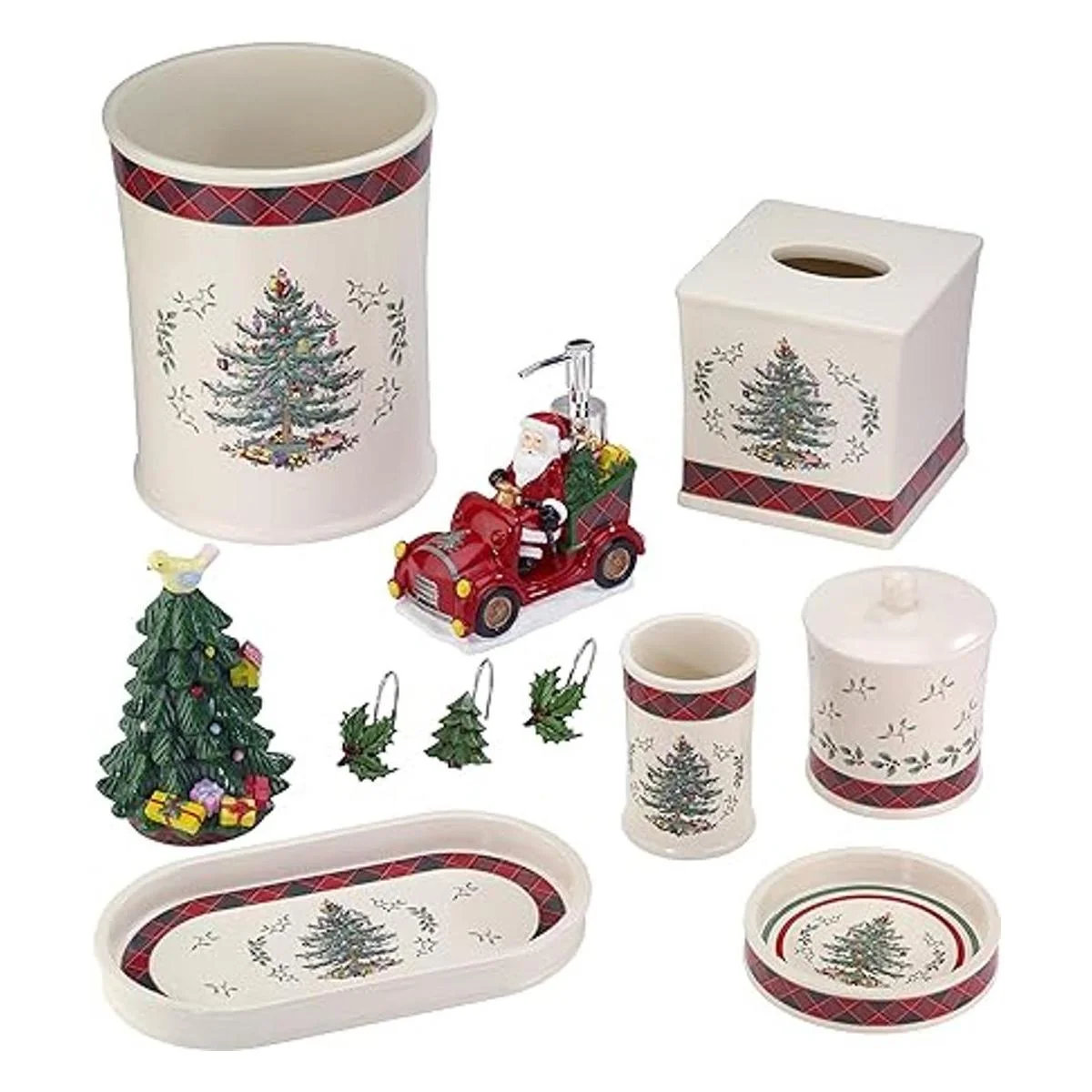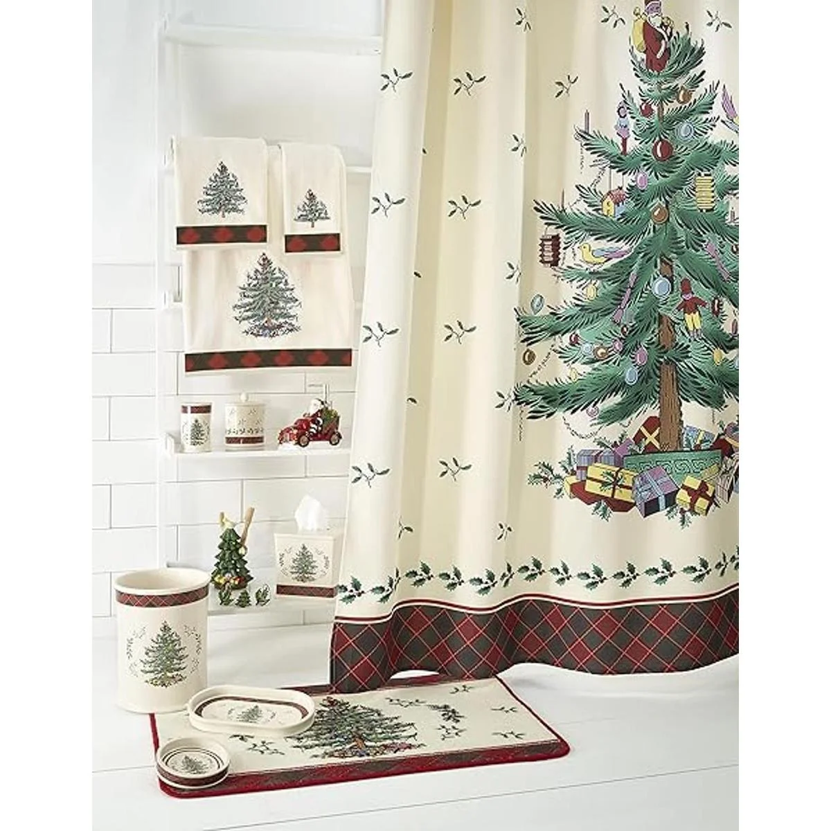 Mezcla y combina: con otros artículos de la colección Spode Christmas Tree Tartan: soportes para cepillos de dientes, jaboneras, vasos, bandejas, tarros, toallas, basureros, cortinas de ducha y ganchos. Coordina un país de las maravillas a cuadros