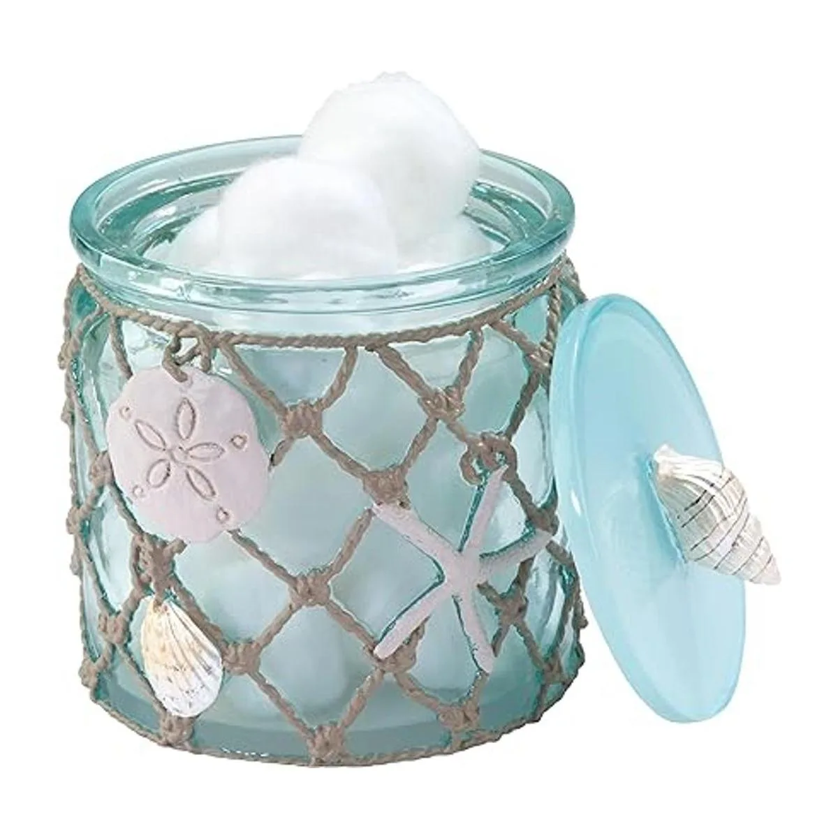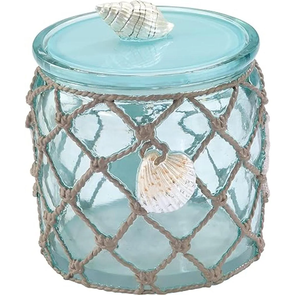Vanity Perfection: el tarro cubierto de gafas de mar es una nueva adición a la colección de accesorios de gafas de marina. Tomamos la fórmula ya exitosa de nuestros otros estilos de Seaglass y creamos un hermoso tarro de tocador que cuenta con el icónico aspecto de cristal marino azul y verde, con criaturas marinas en alivio de resina segura para alimentos. Perfecto para guardar tus esponjas de algodón, esponjas o cualquier cosa que necesite un lugar de almacenamiento elegante.