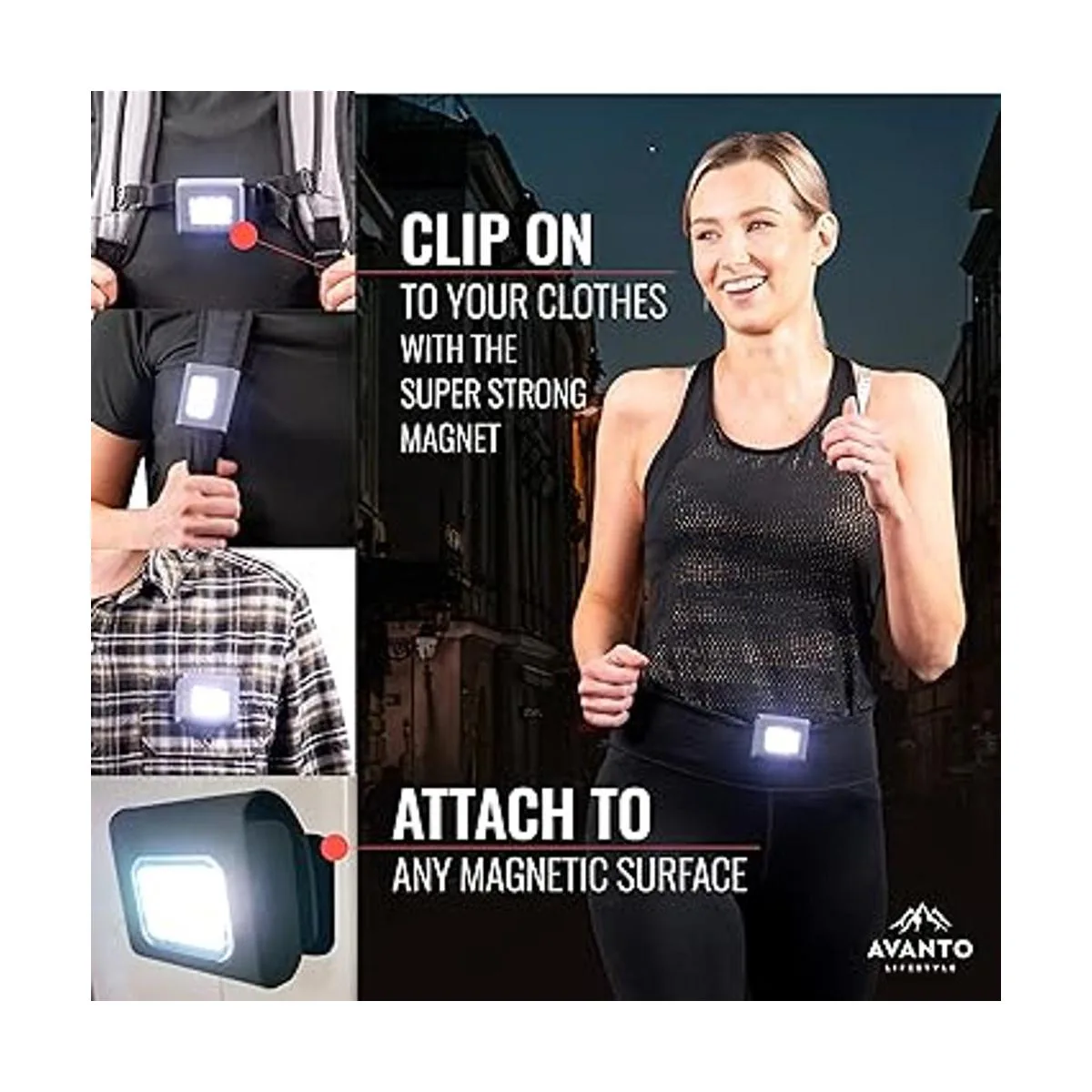 Sé inteligente y visible: obtén la luz original Avanto Clip PRO ahora para cualquier actividad nocturna Obtienes 5 años de garantía de devolución de dinero 100 completa, simplemente ponte en contacto con nuestro servicio de atención al cliente supremo y nos encargamos de ti Obtén el tuyo ahora de nuestra pequeña empresa familiar