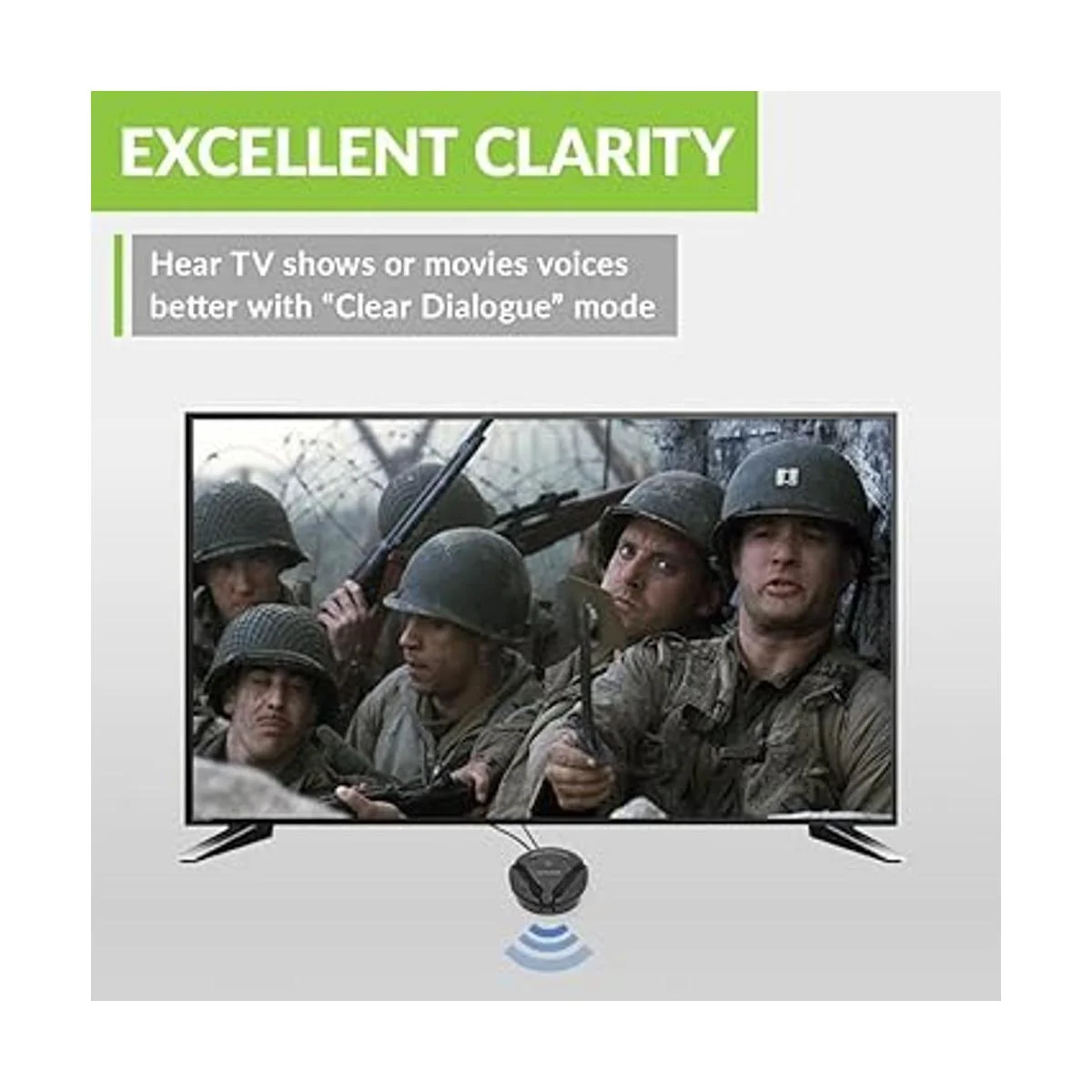 Experiencia auditiva mejorada: el Medley está diseñado con un nivel de volumen que es más fuerte que los otros auriculares de TV en el mercado; esto combinado con el modo de sonido especial Clear Dialogue, mejorará significativamente la claridad de conversaciones/diálogos en tus programas de televisión y películas favoritos.