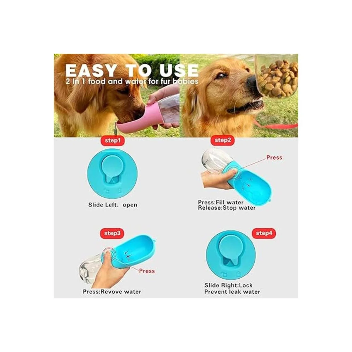 AVELORA Botella de agua para perros, botella de agua portátil para mascotas con recipiente de alimentos, dispensador de agua portátil al aire libre para gatos, conejos, cachorros y otras mascotas para caminar, senderismo, viajes