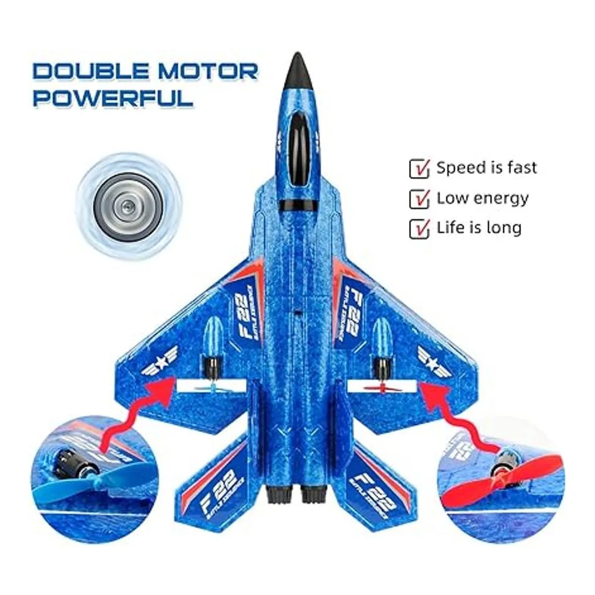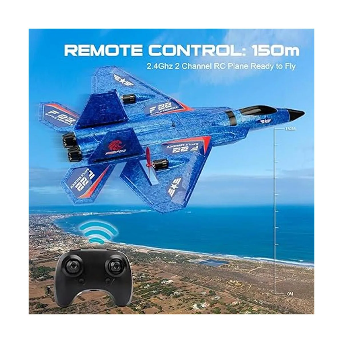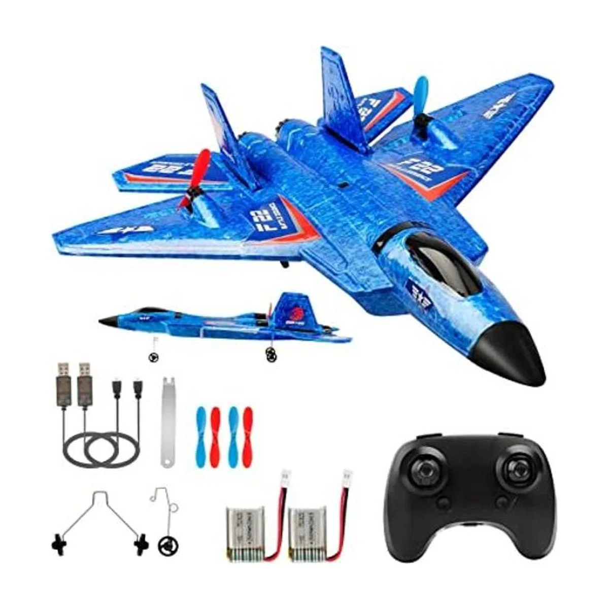 Avión RC, F22 RC Avión de combate listo para volar, avión de control remoto de 2.4 Ghz de 2 canales, juguete de aviones RC para niños y niñas principiantes