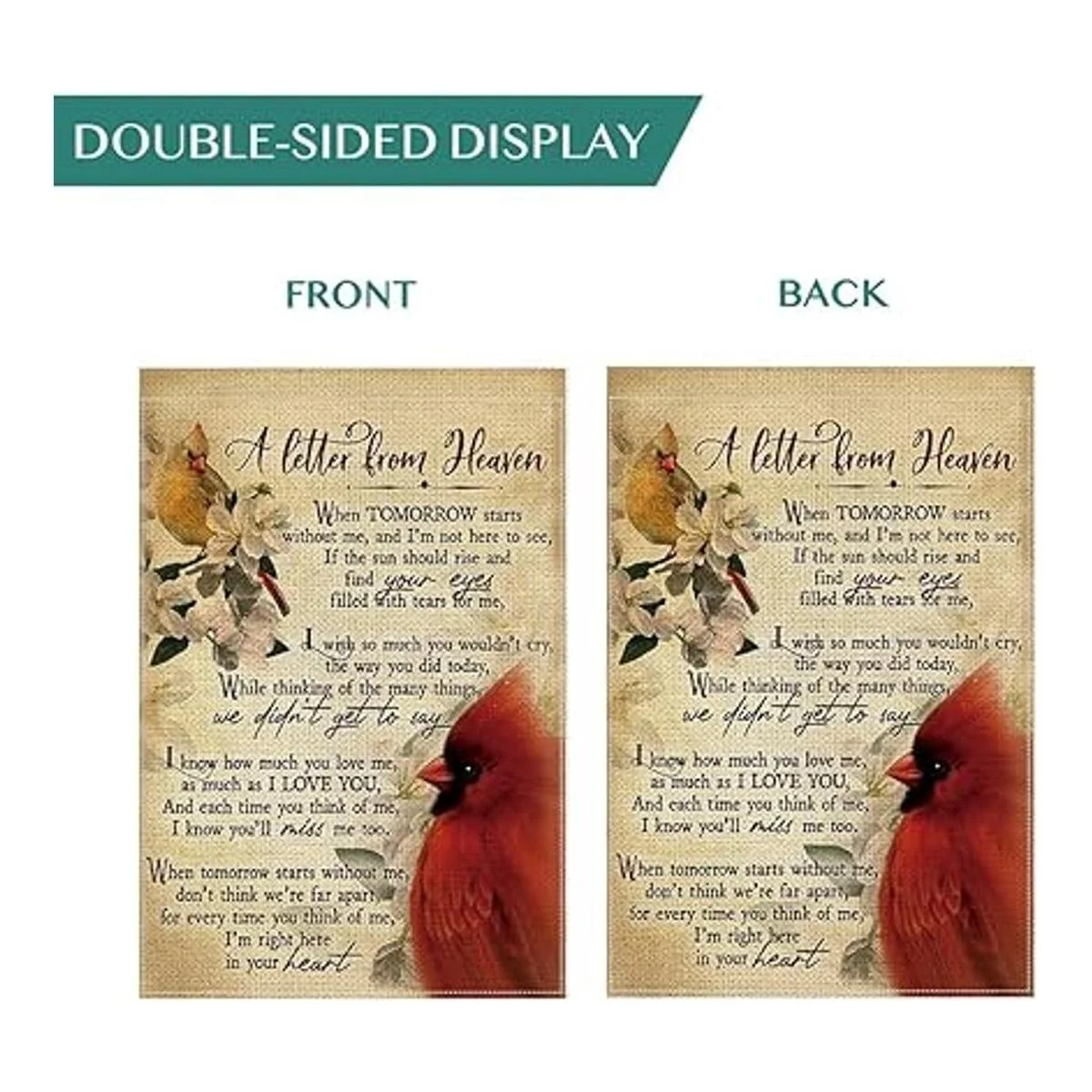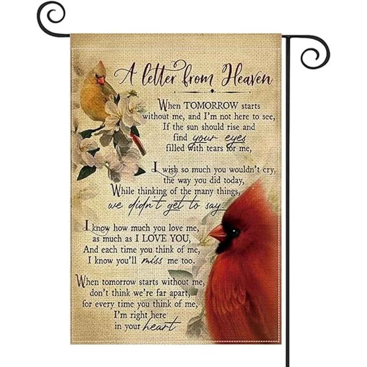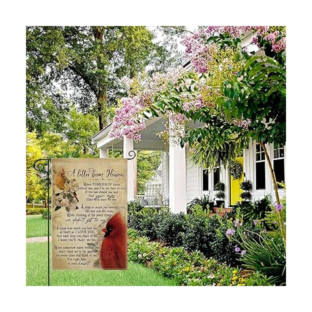 AVOIN colorlife Bandera de jardín cardenal de doble cara, carta del cielo, conmemorativa conmemorativa del cementerio, tumba, patio, decoración al aire libre, 12.5 x 18 pulgadas