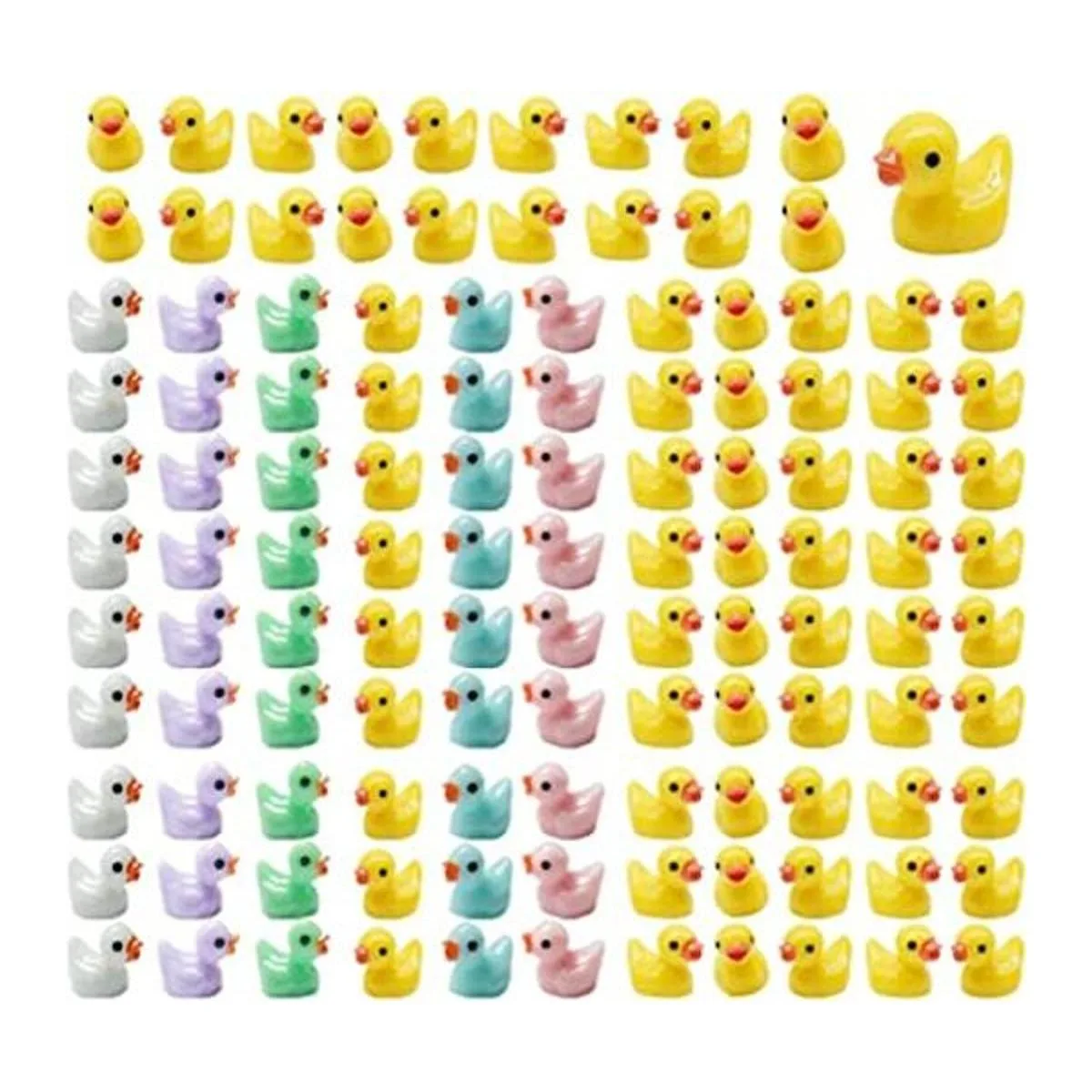 AWEELON 100 piezas de mini patos de resina pequeños patos en miniatura para dijes de limo, manualidades, micropaisaje, jardín, acuario, decoración de casa de muñecas para Navidad, fiesta de cumpleaños color mixto