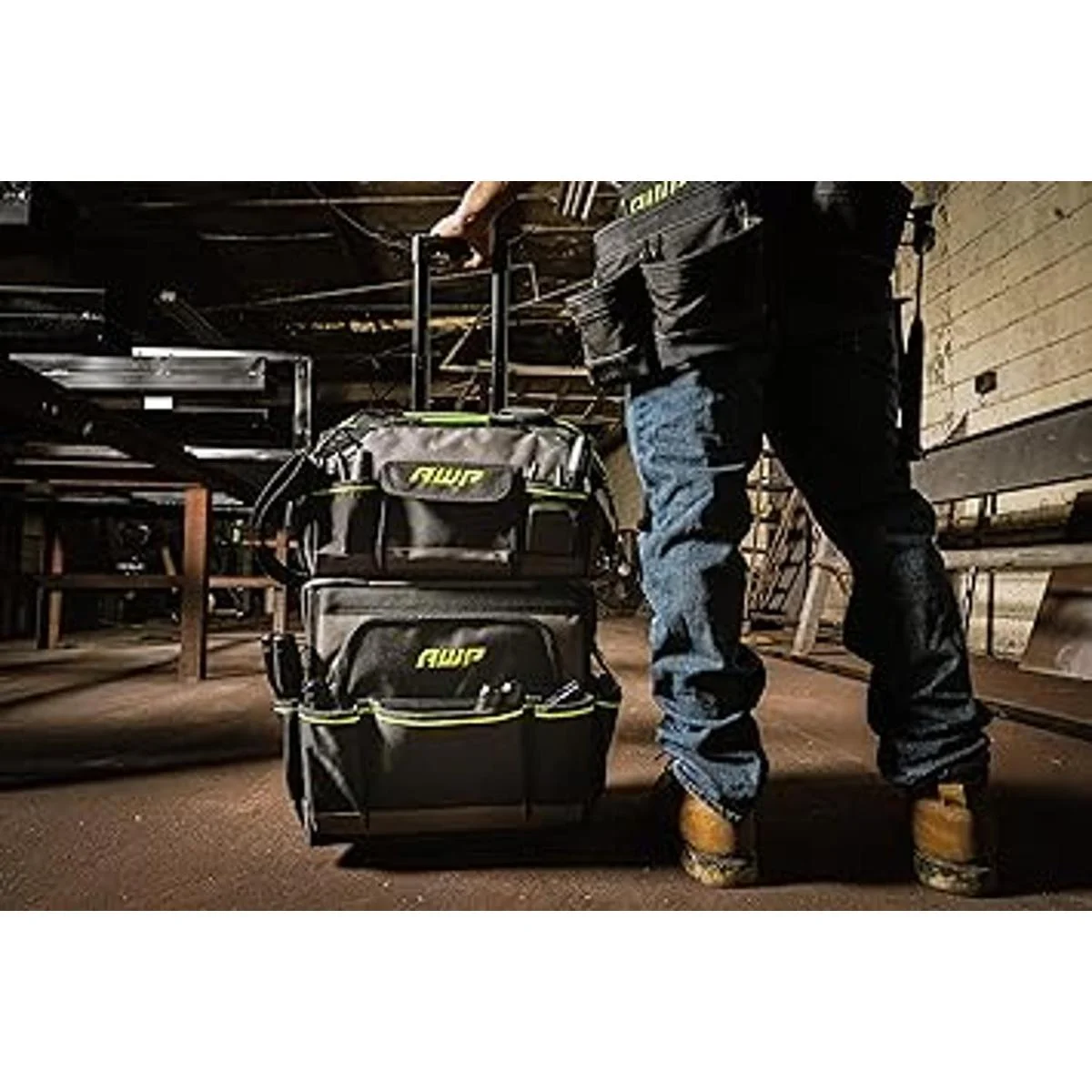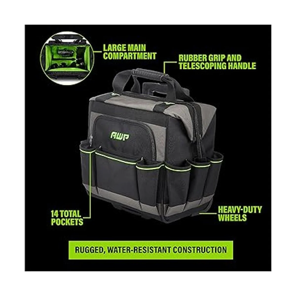 AWP 14 pulgadas. Bolsa de herramientas rodante: almacenamiento de herramientas duradero y versátil con asas de fácil transporte y ruedas resistentes que proporcionan una fácil organización y transporte de herramientas en todo el lugar de trabajo