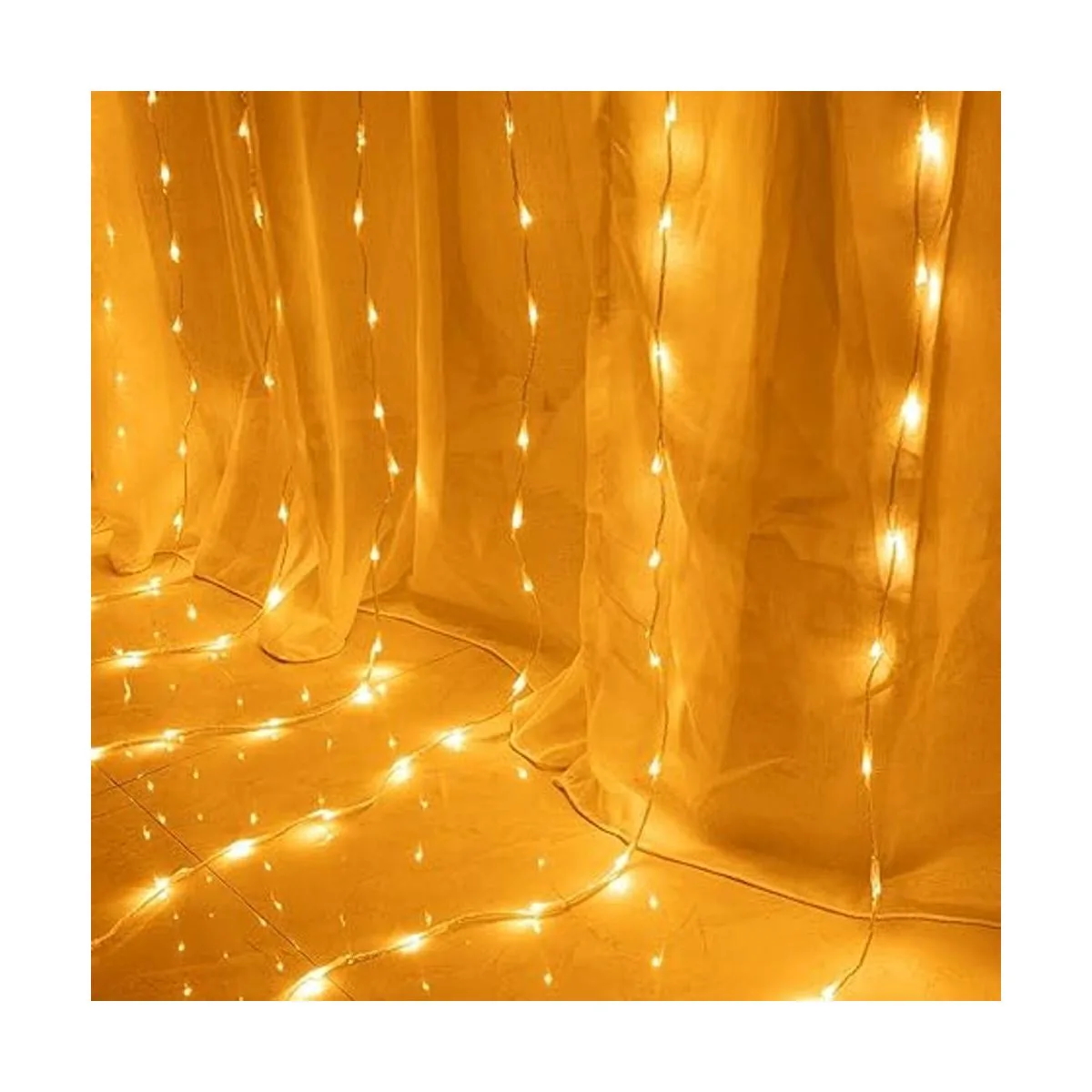 Alta calidad: 6.6 pies x 9.8 pies ancho x largo, 300 luces LED. Luces de cortina seguras de voltaje de 29 V con certificación UL, conduce a una salida segura de 29 V por transformador de enchufe UL. Nota: esta cadena de luces LED no se puede extender ni conectar juntas.