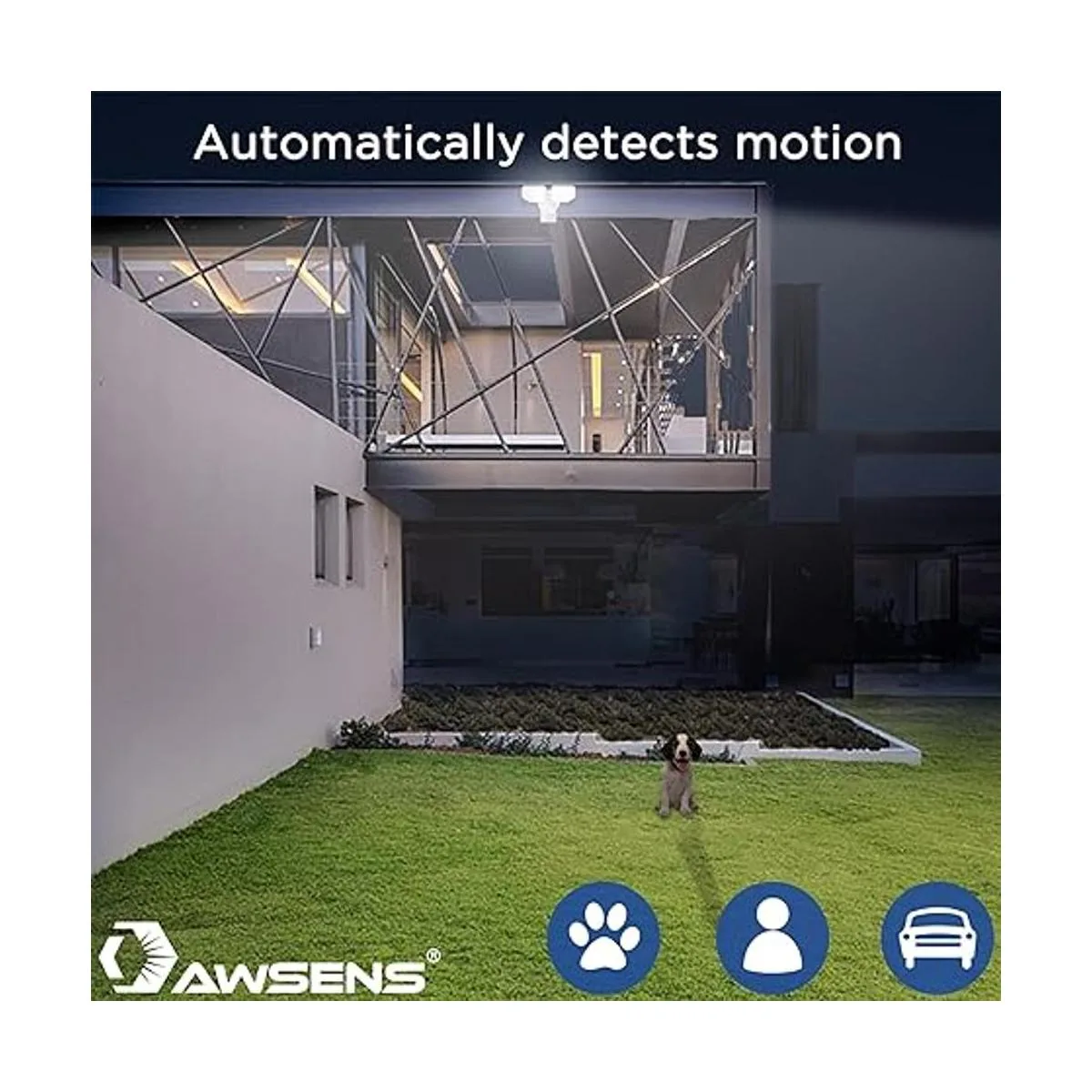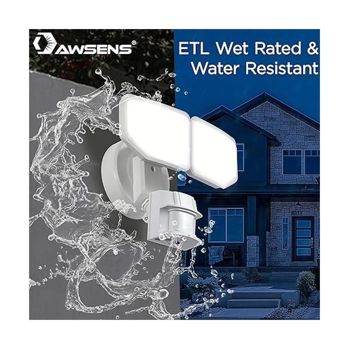AWSENS Luz de seguridad LED con sensor de movimiento de 30 W para exteriores, 180 grados, 2600 LM, 5100 K, ETL, resistente al agua, 2 cabezales ajustables con sensor de movimiento al aire libre para patio, garaje, porche blanco