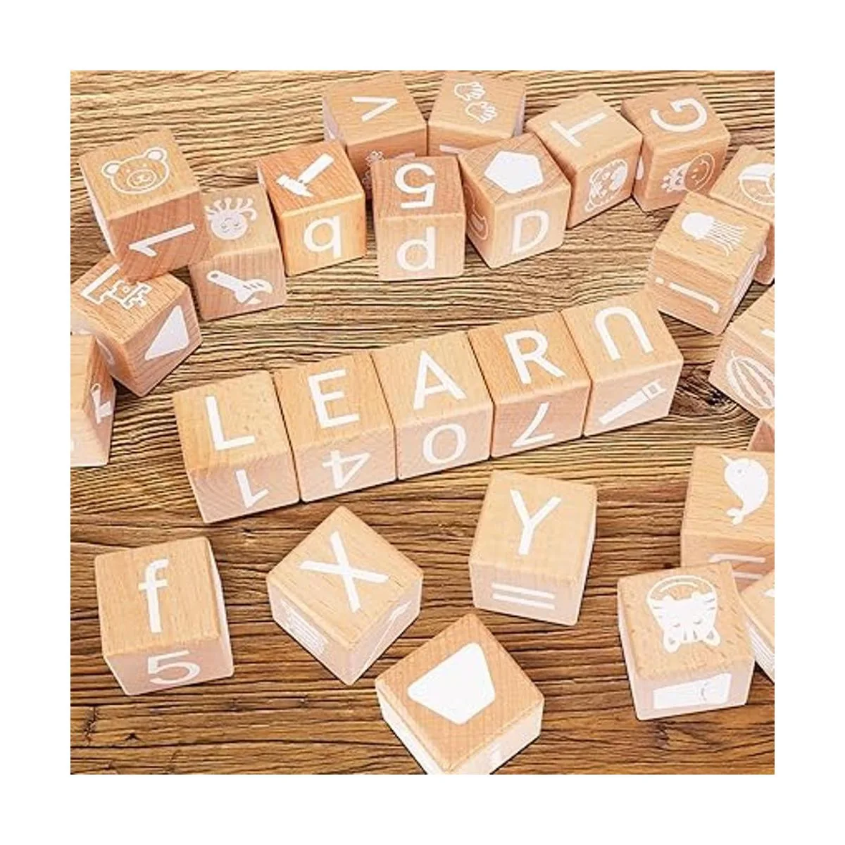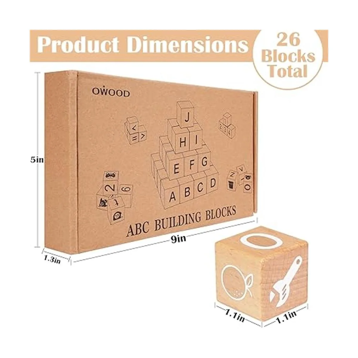 1. Cubo de letras del alfabeto de madera de 18 pulgadas: los bloques abc con bordes redondeados 1. 18 pulgadas / 1.181 in están lijados suavemente, lo que los hace cómodos y más fáciles para las manos pequeñas de agarrar, apilar, ordenar y construir.