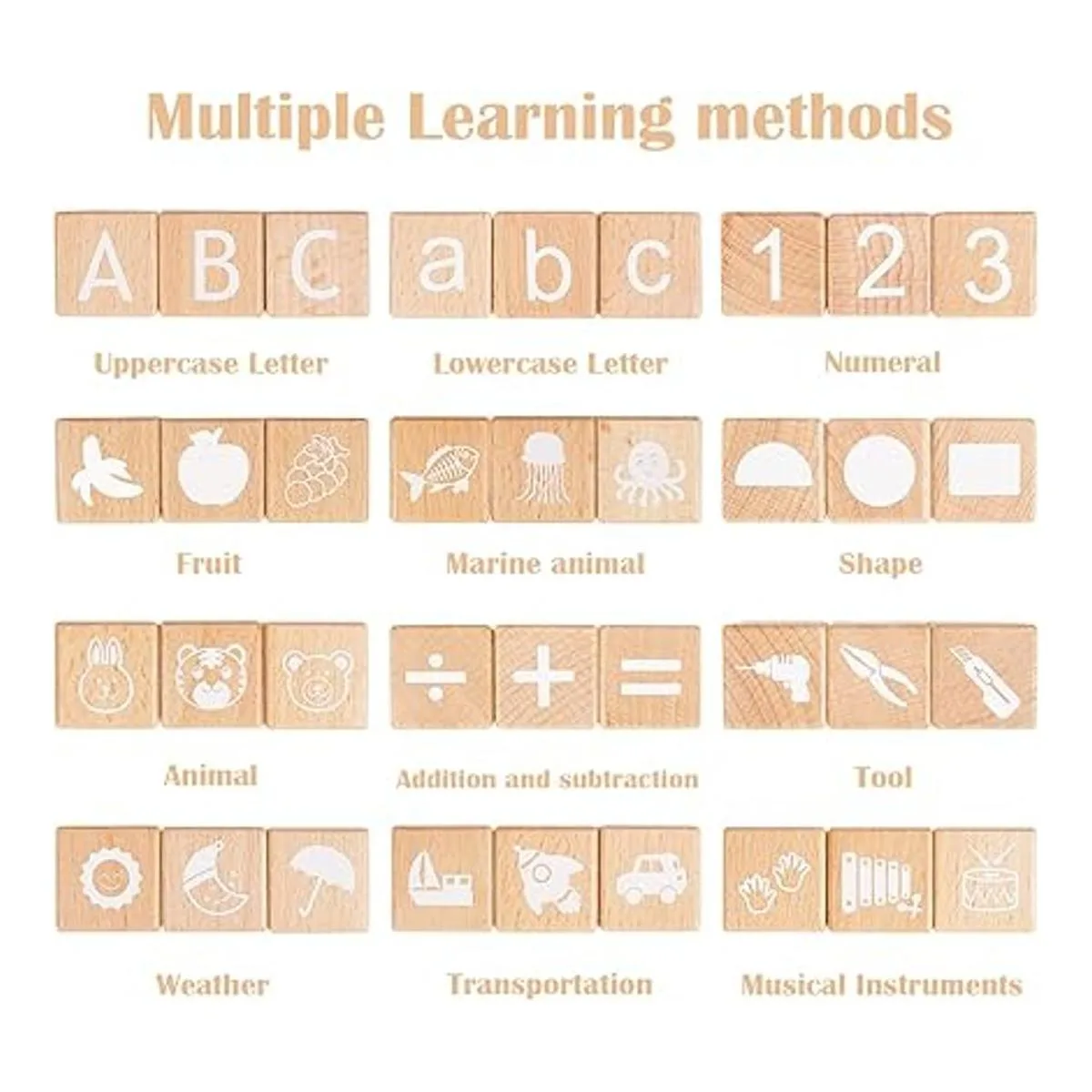 Bloques de madera duraderos y seguros: el extremo de madera está hecho de madera natural con pintura no tóxica a base de agua. Cada pieza está cuidadosamente elaborada para asegurarse de que no haya bordes rugosos, asegurando un juego seguro para niños y niños pequeños.