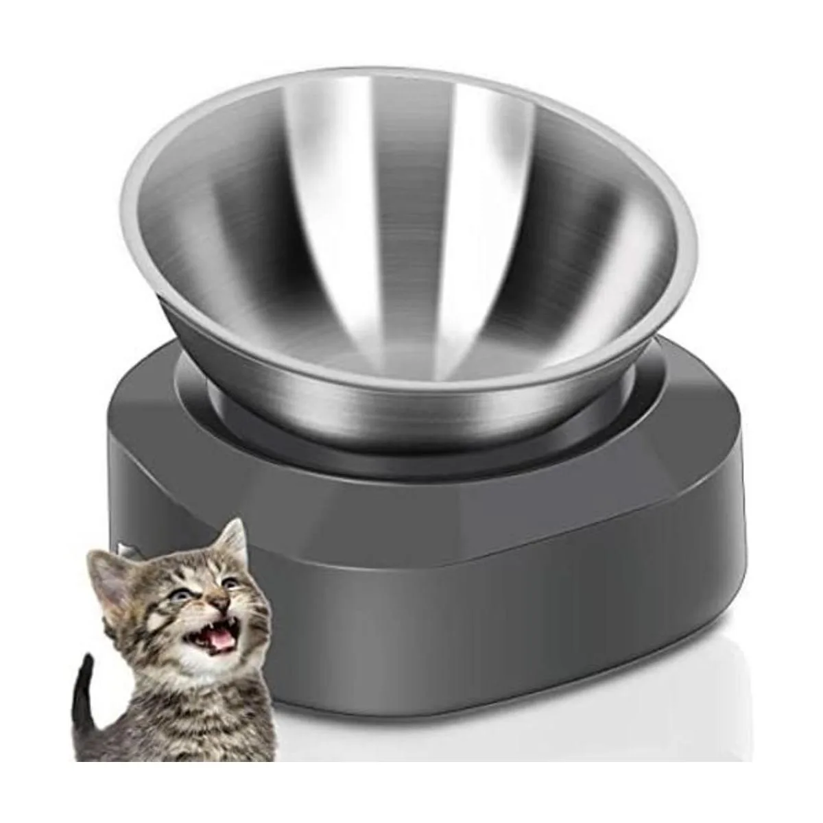 AYADA Cuenco elevado de comida para gatos, de acero inoxidable, para alimentos, agua, antivómitos, elevado, con soporte, ergonómico, inclinado, inclinado, 15 ángulos, metal, para gatito, comida húmeda, cuenco para mascotas
