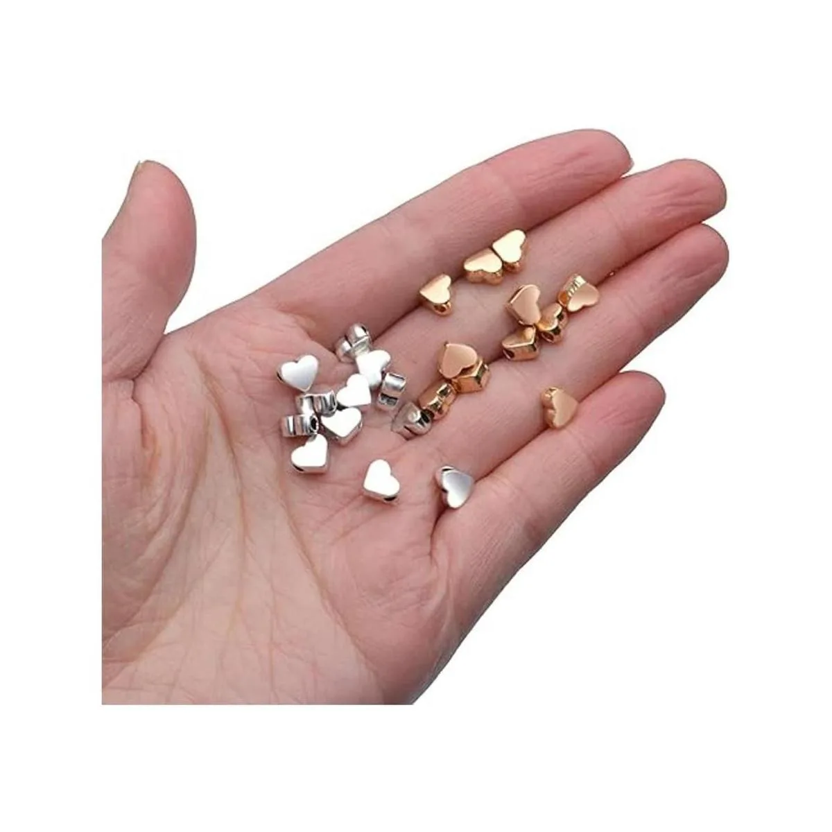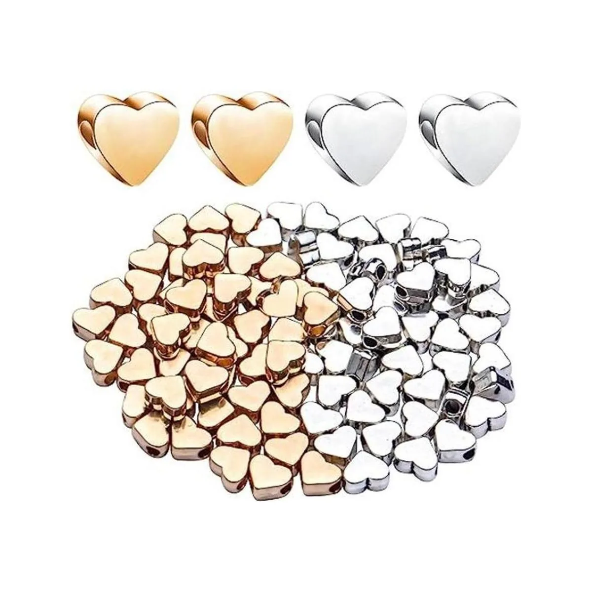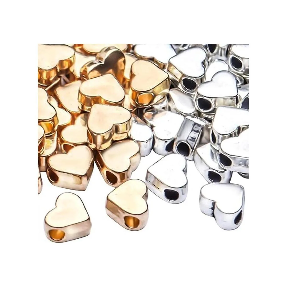 Aylifu 100 cuentas en forma de corazón, espaciadores de corazón europeos, cuentas sueltas, joyería de corazón para bricolaje, collares, aretes, pulseras, suministros de manualidades hechos a mano oro, plata