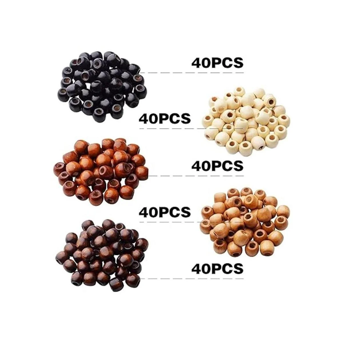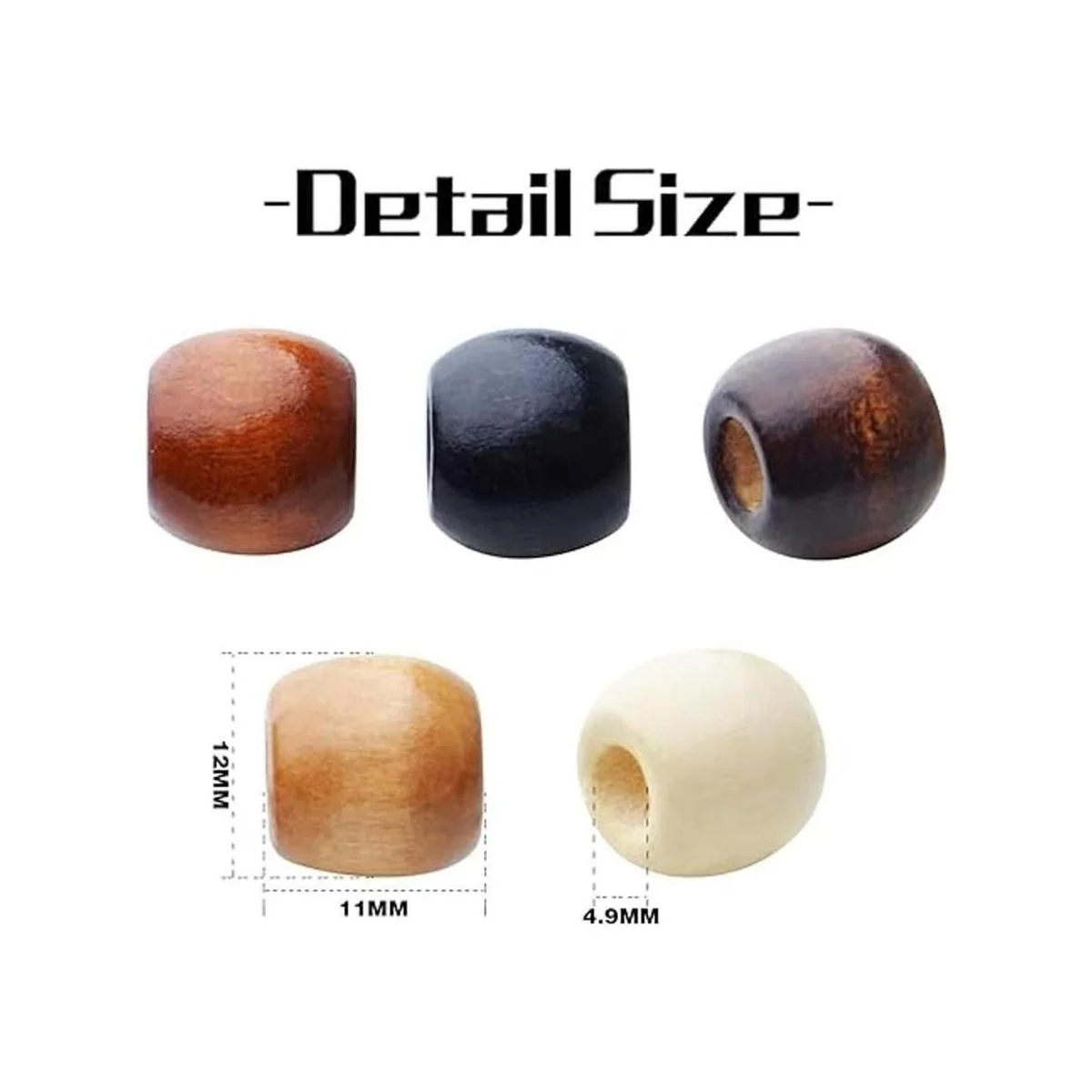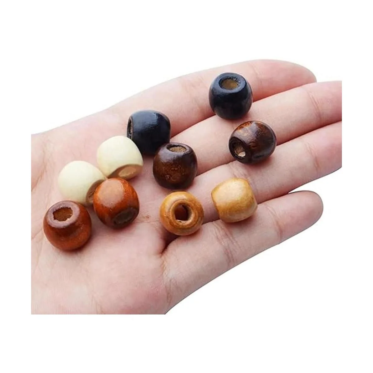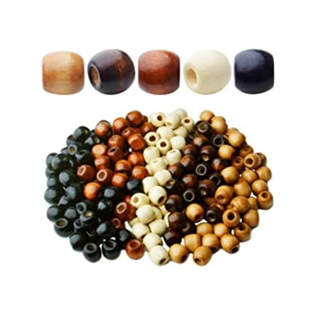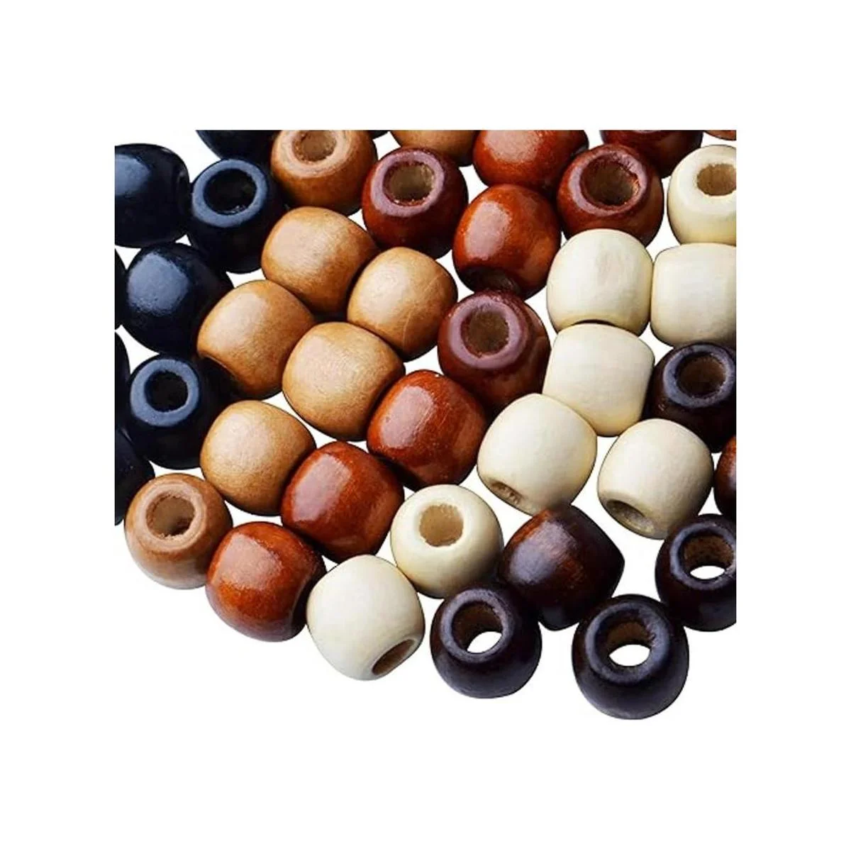 Aylifu 200 cuentas de madera de agujero grande, barril natural, cuentas espaciadoras de madera, tambor, cuentas sueltas para trenzar el cabello, para hacer joyas, cáñamo, manualidades, 5 colores, agujero 0.193 in