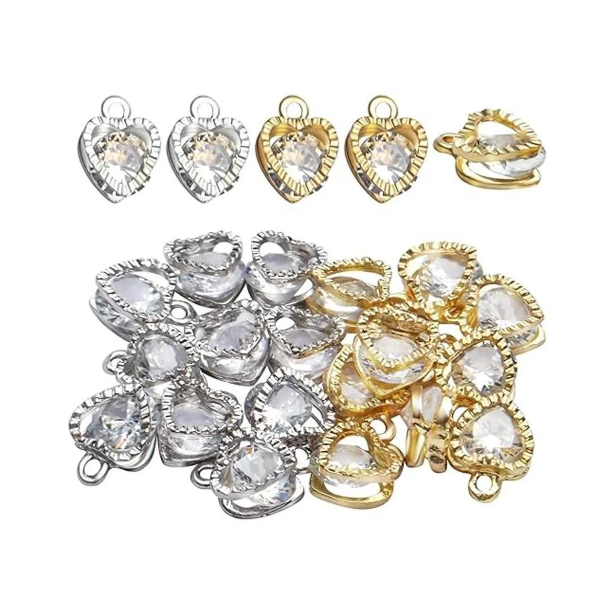 Material duradero: estos colgantes con forma de corazón están hechos de aleación de zinc, sin plomo, resistentes y duraderos, completados con una circonita cúbica en el interior, aspecto brillante y brillante; sin hoyos ni rebabas, bonitos abalorios de corazón crearán moda y estilo vintage.