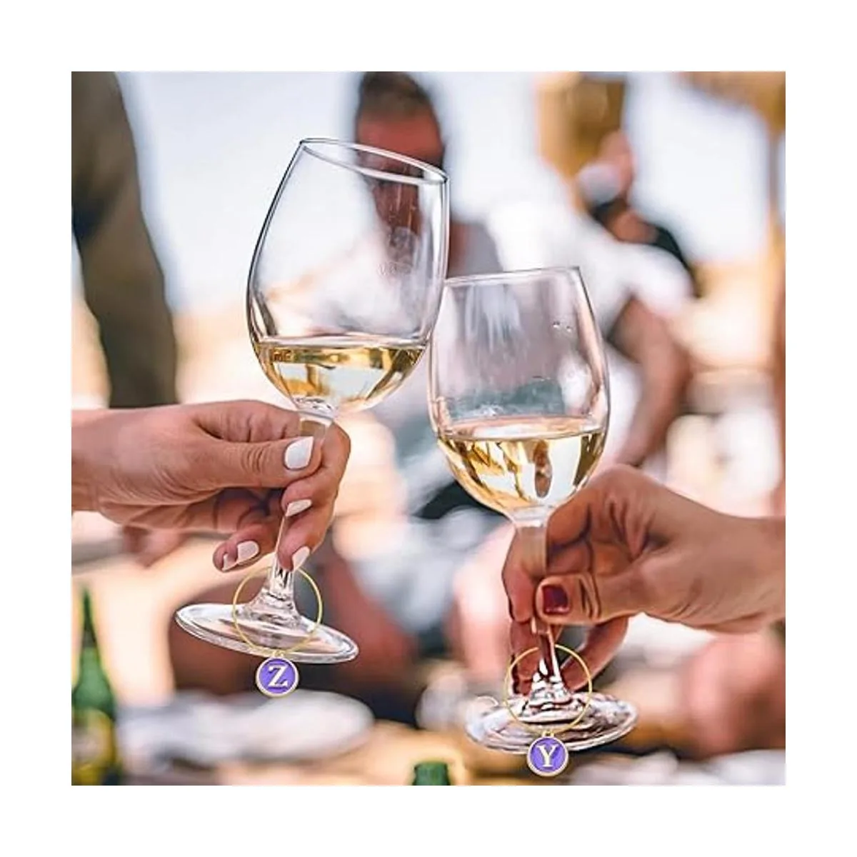 Cantidad del paquete: el paquete incluye 60 anillos de copa de vino y 52 dijes esmaltados del alfabeto, estos marcadores de copa de vino con letras seguramente traerán más alegría a tu tiempo de bebida.