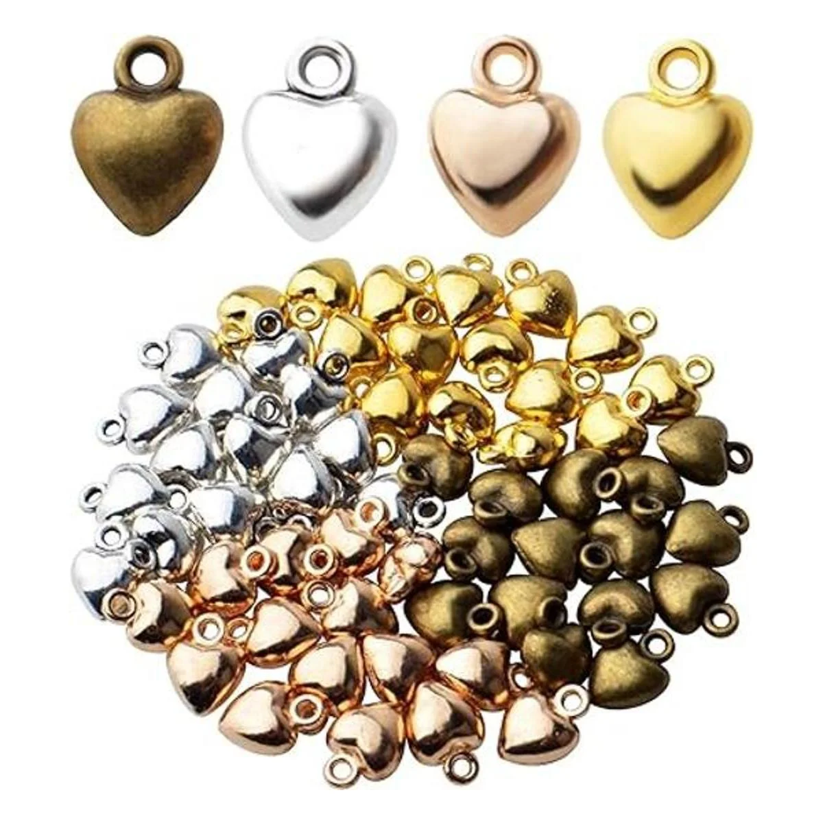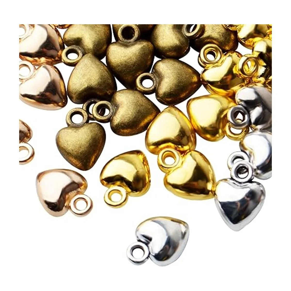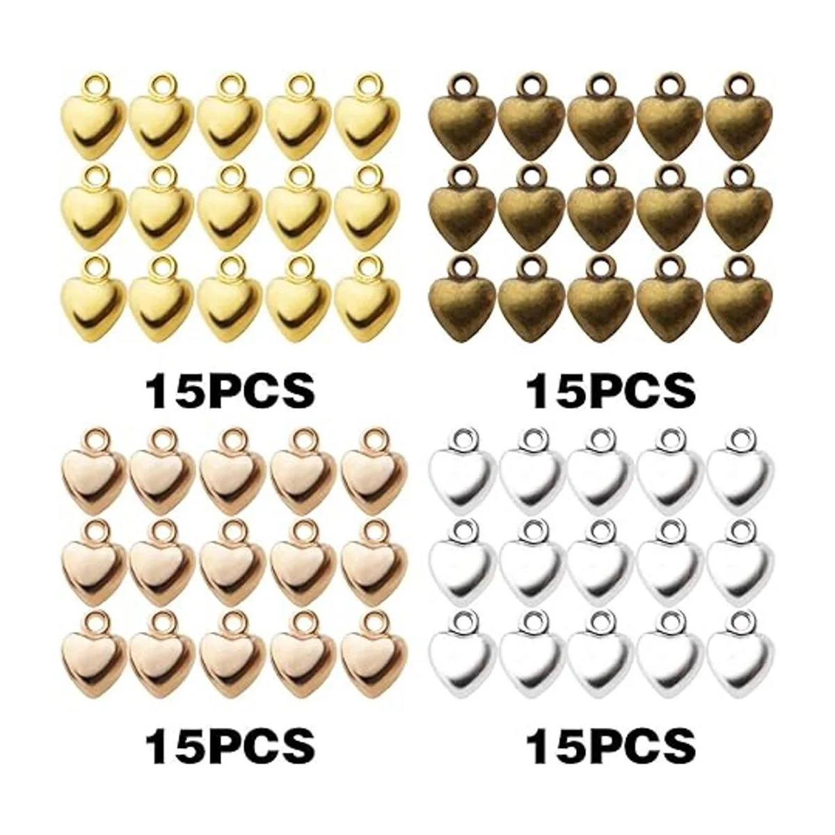 Aylifu 60 colgantes de corazón con dije de amor, aleación de estilo europeo, cadena extensora de gotas para bricolaje, collares, aretes, accesorios, 4 colores