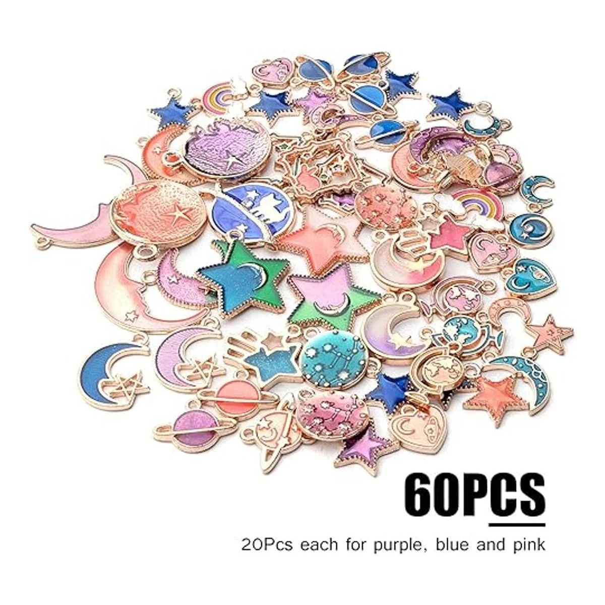 Aylifu 60 dijes de esmalte mixto con corazón, luna, estrella, dije celestial, dijes de joyería para bricolaje, aretes, collares, pulseras, fabricación de joyas y manualidades, 3 colores