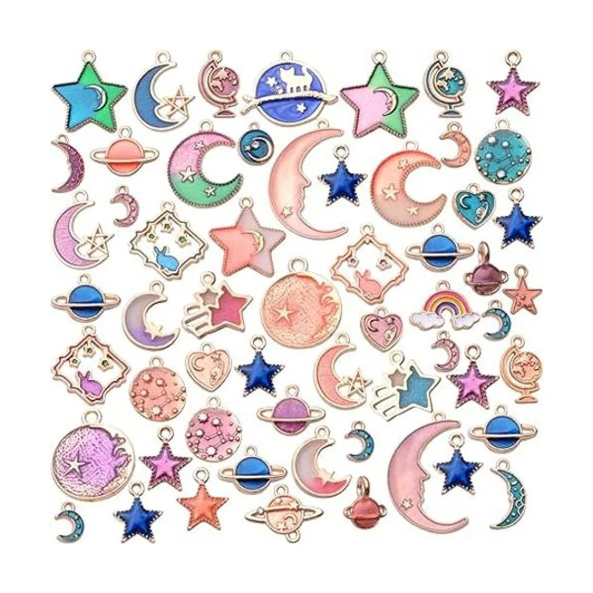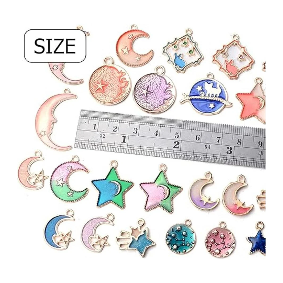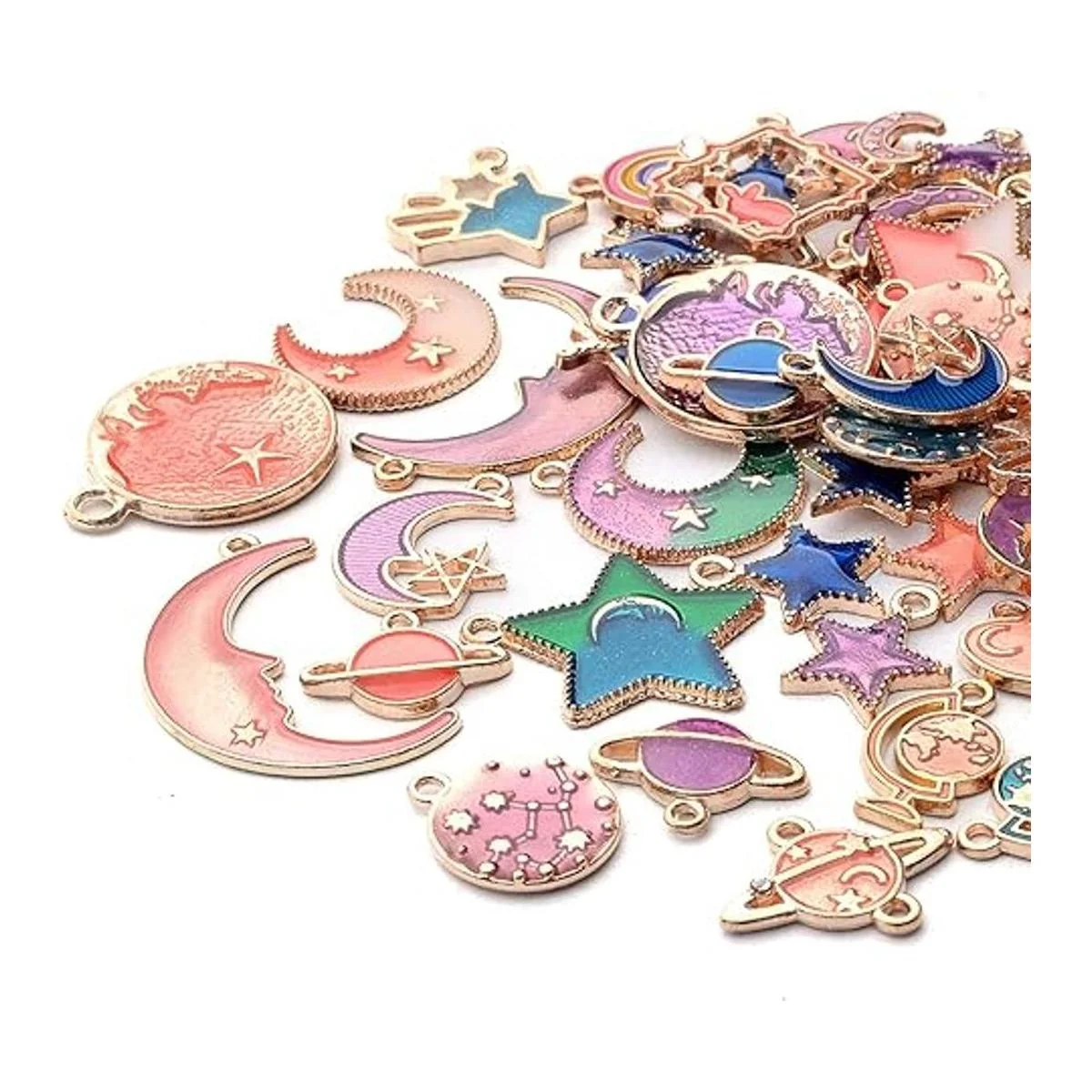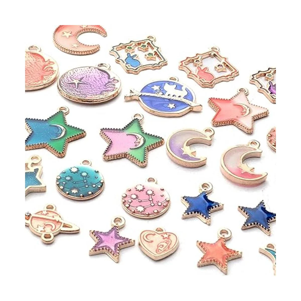 Bonito diseño: los dijes esmaltados están diseñados con varias formas, como luna adorable, estrella, corazón, planeta, forma celestial, etc. Diseño sofisticado e ideal que añade detalles llamativos que puedes llevar en todas partes.