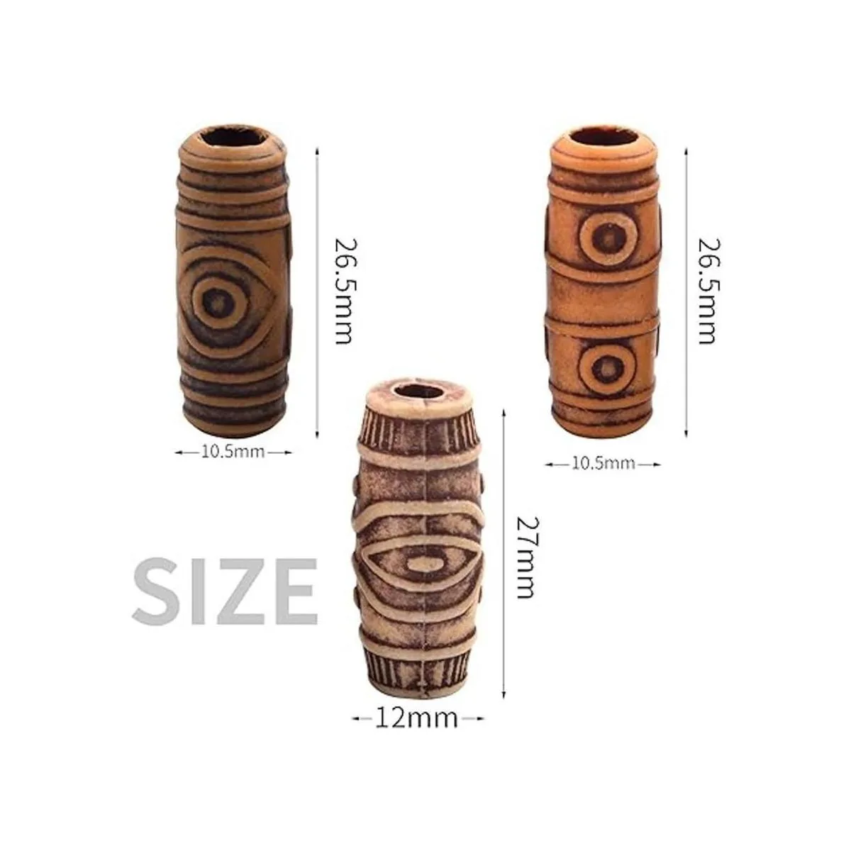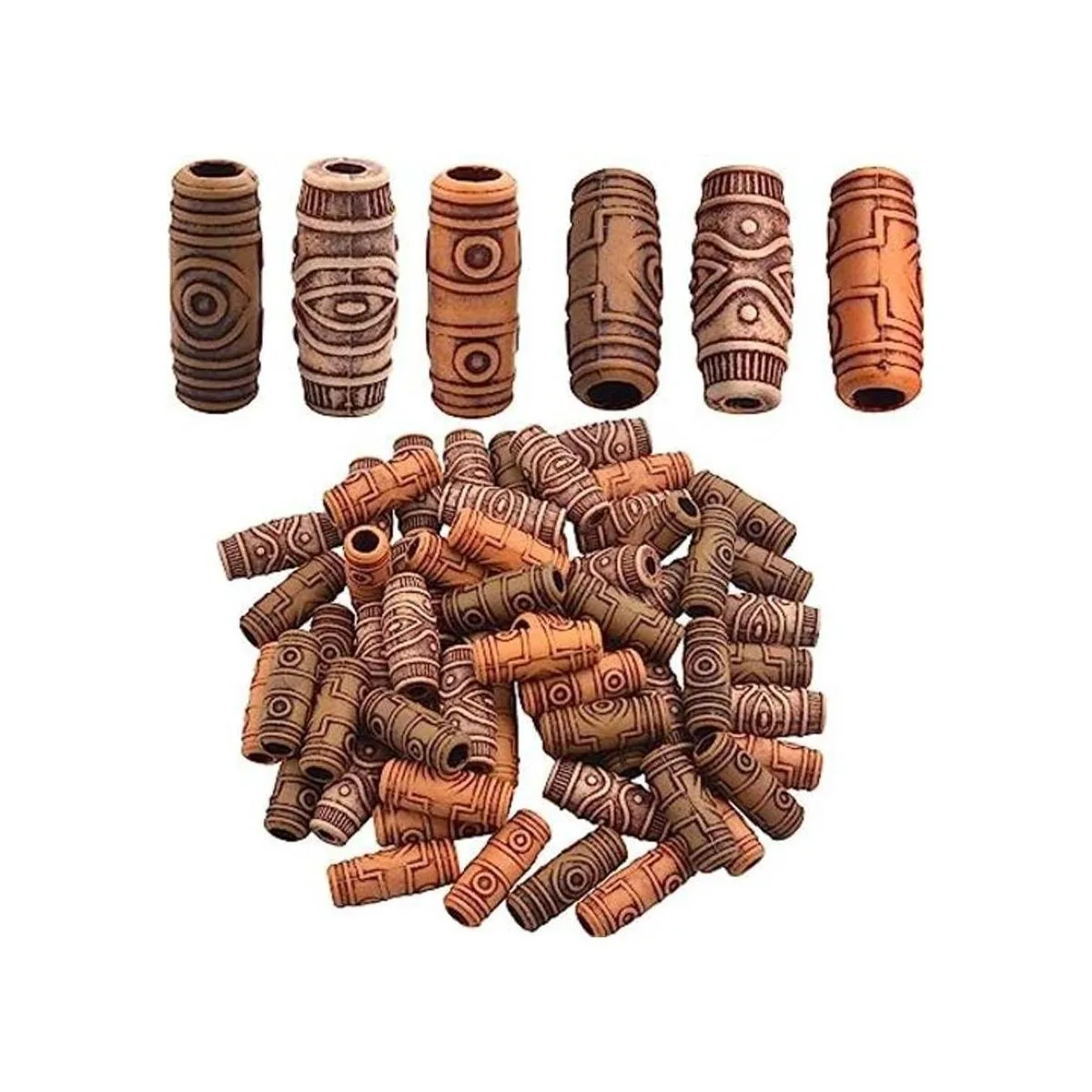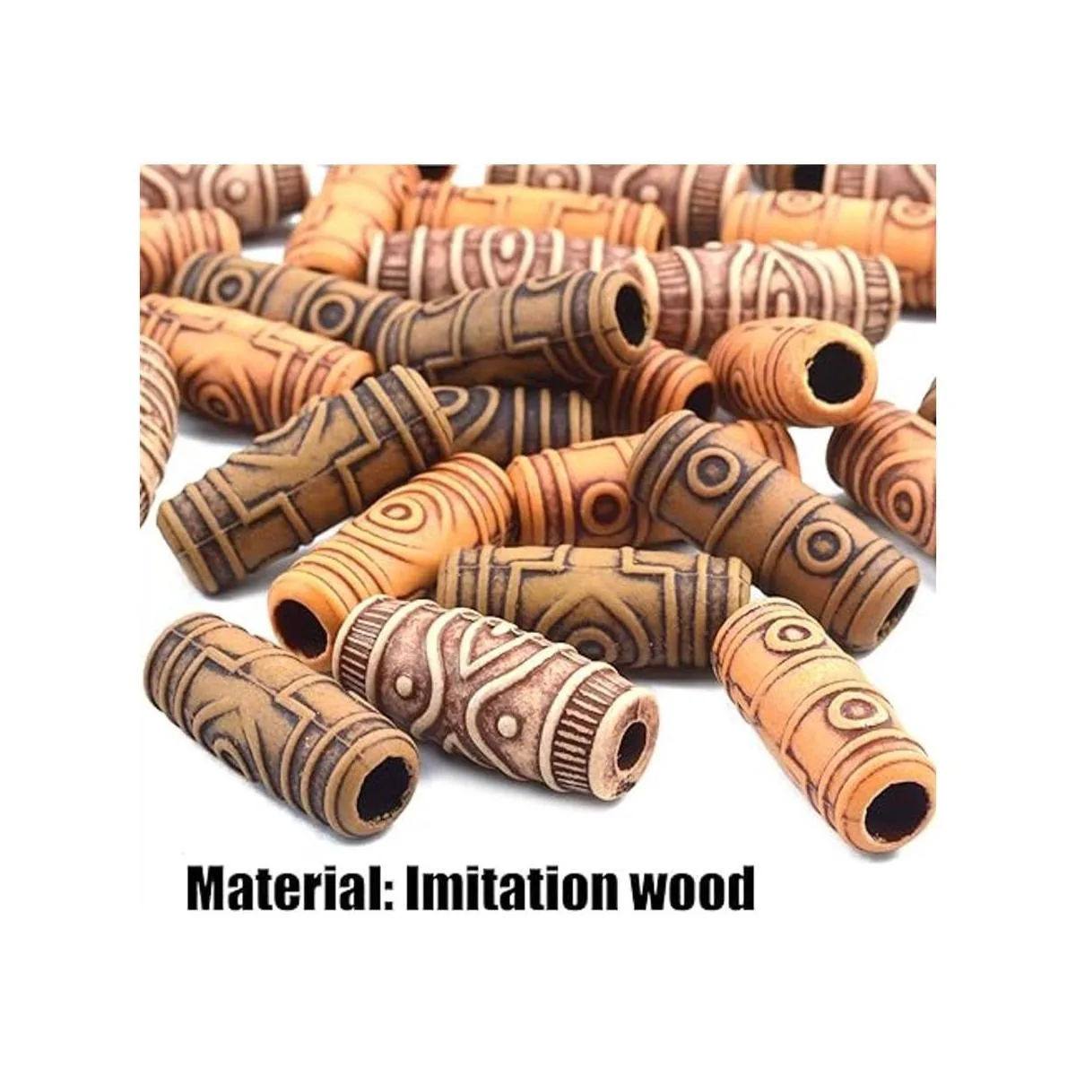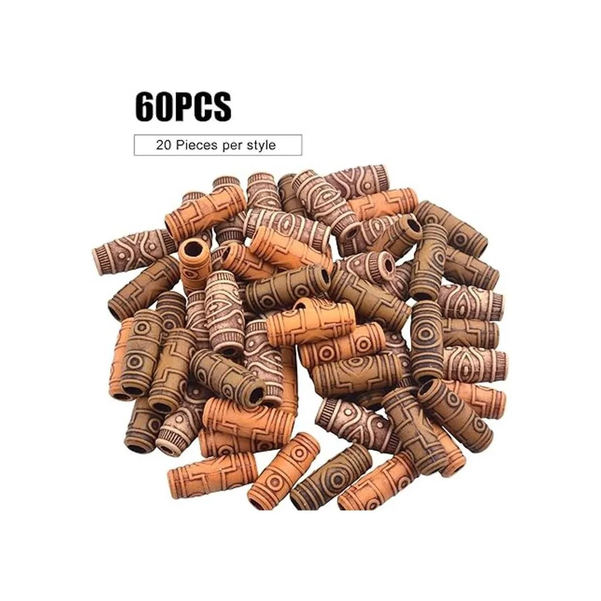 Aylifu Cuentas de tubo para el cabello, 60 cuentas de madera de imitación, cuentas de pelo de rasta, cuentas de tubo huecas, accesorio de bricolaje para decoración de trenzas, colores mixtos
