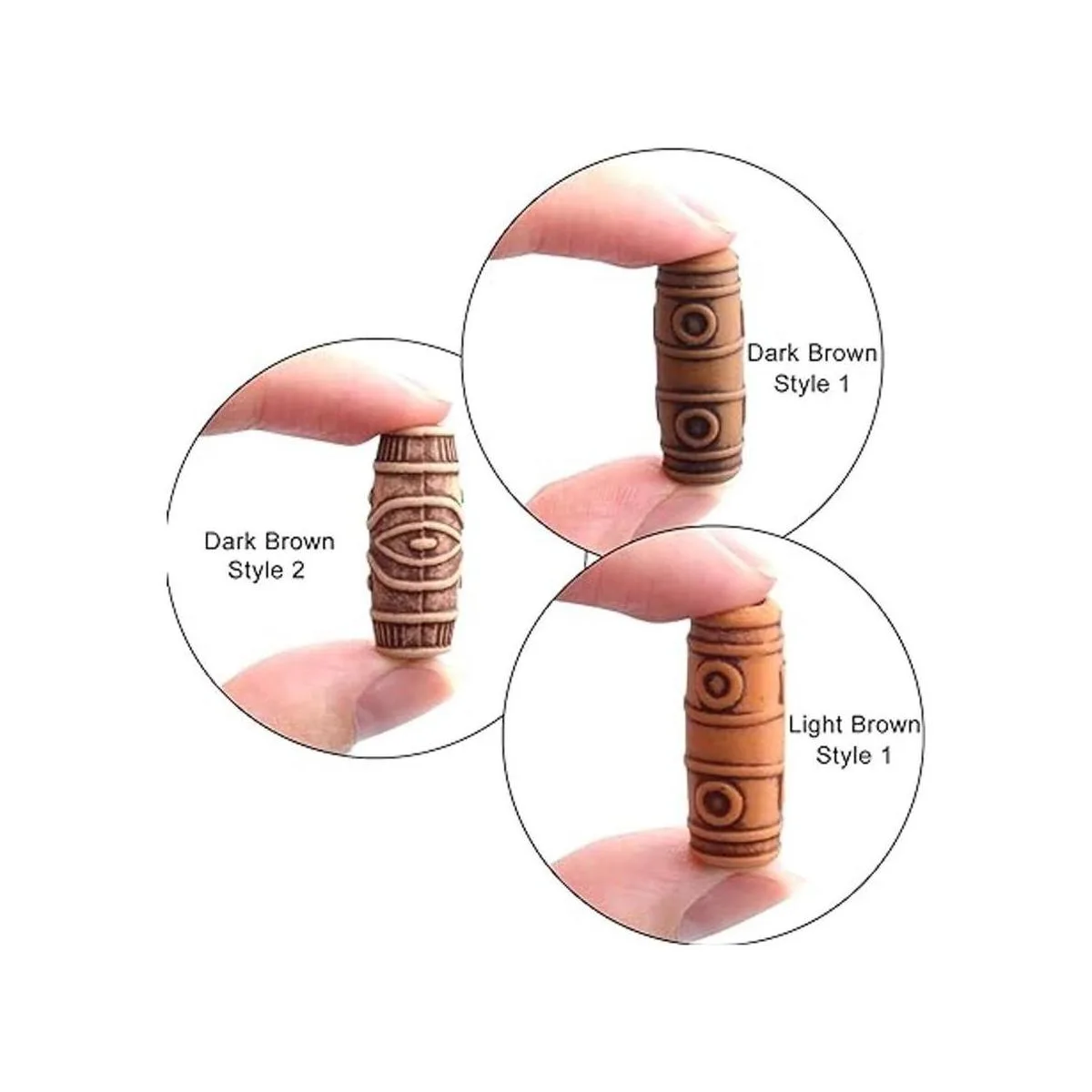 Cantidad del paquete: 60 cuentas trenzadas de pelo, 20 piezas marrón claro, 20 piezas marrón oscuro para estilo 1 y 20 piezas marrón oscuro para estilo 2.