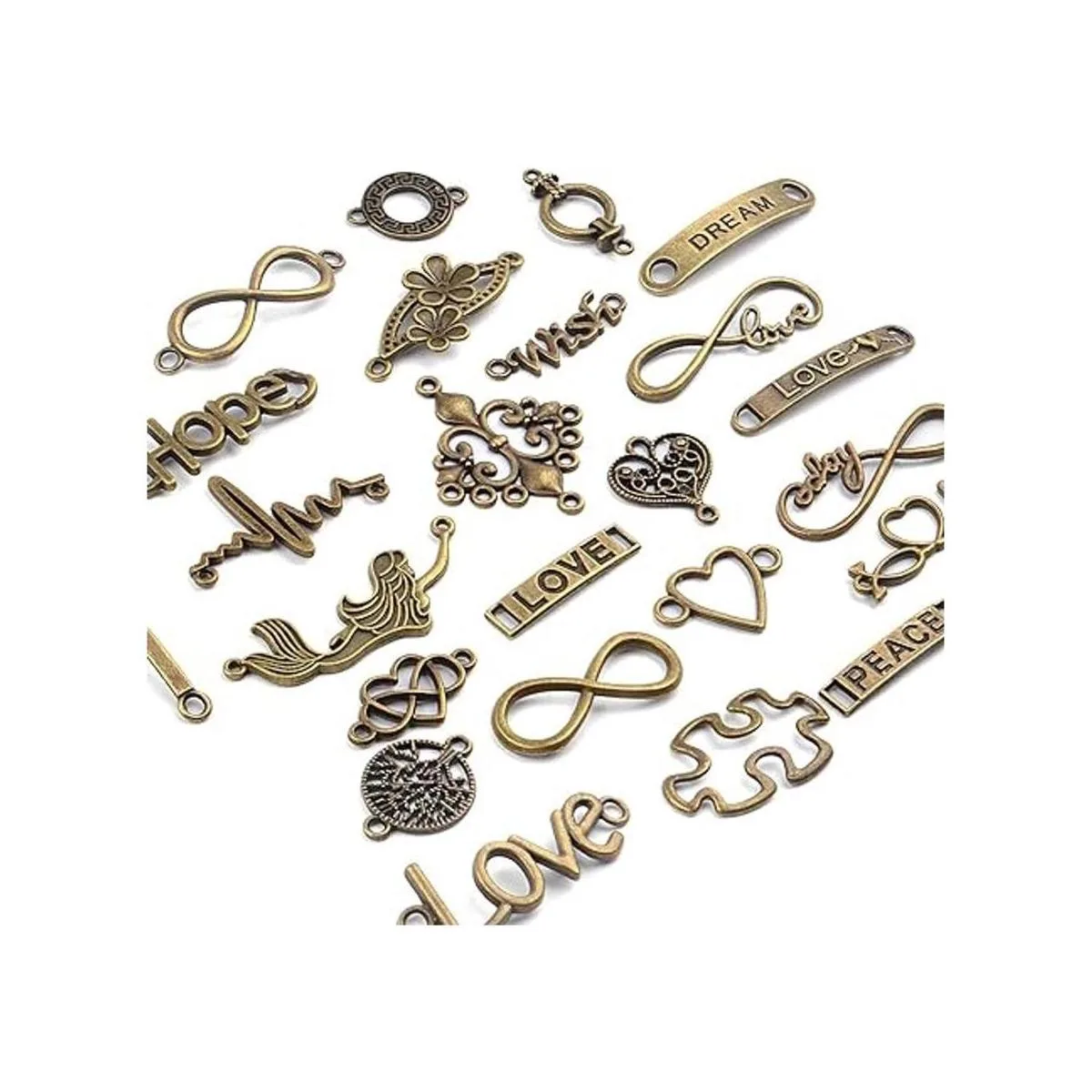 Excelente accesorio de artesanía: dijes de conector de palabras perfectos para crear colgantes dramáticos, collares, pulseras, tobilleras, colgantes de bolsa, cremalleras decorativas y mucho más.