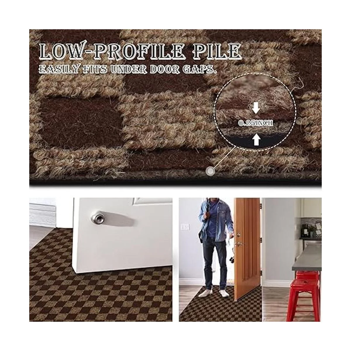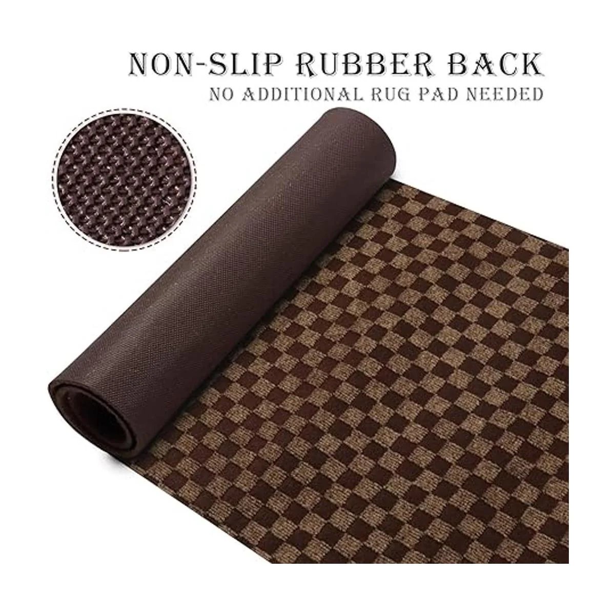 AYOHA Alfombra de pasillo de 2 x 6 pies para interiores y exteriores, para pasillo, cocina, entrada, dormitorio, con respaldo de goma antideslizante natural, tapete de garaje, marrón a cuadros personalizado