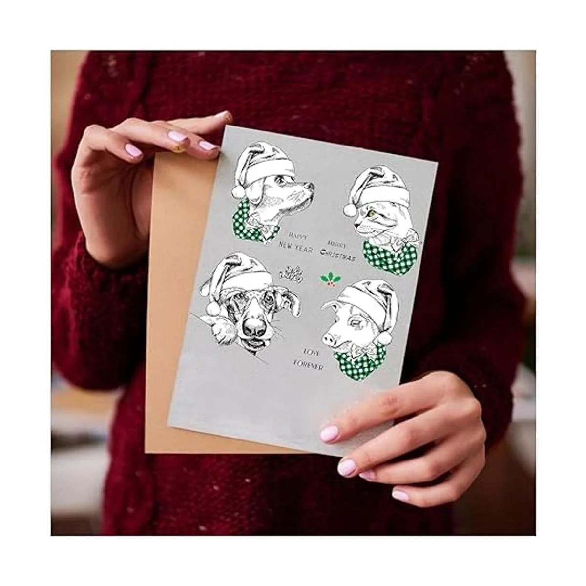 4 hojas por paquete. Recibirás cuatro bonitos sellos de animales de Navidad