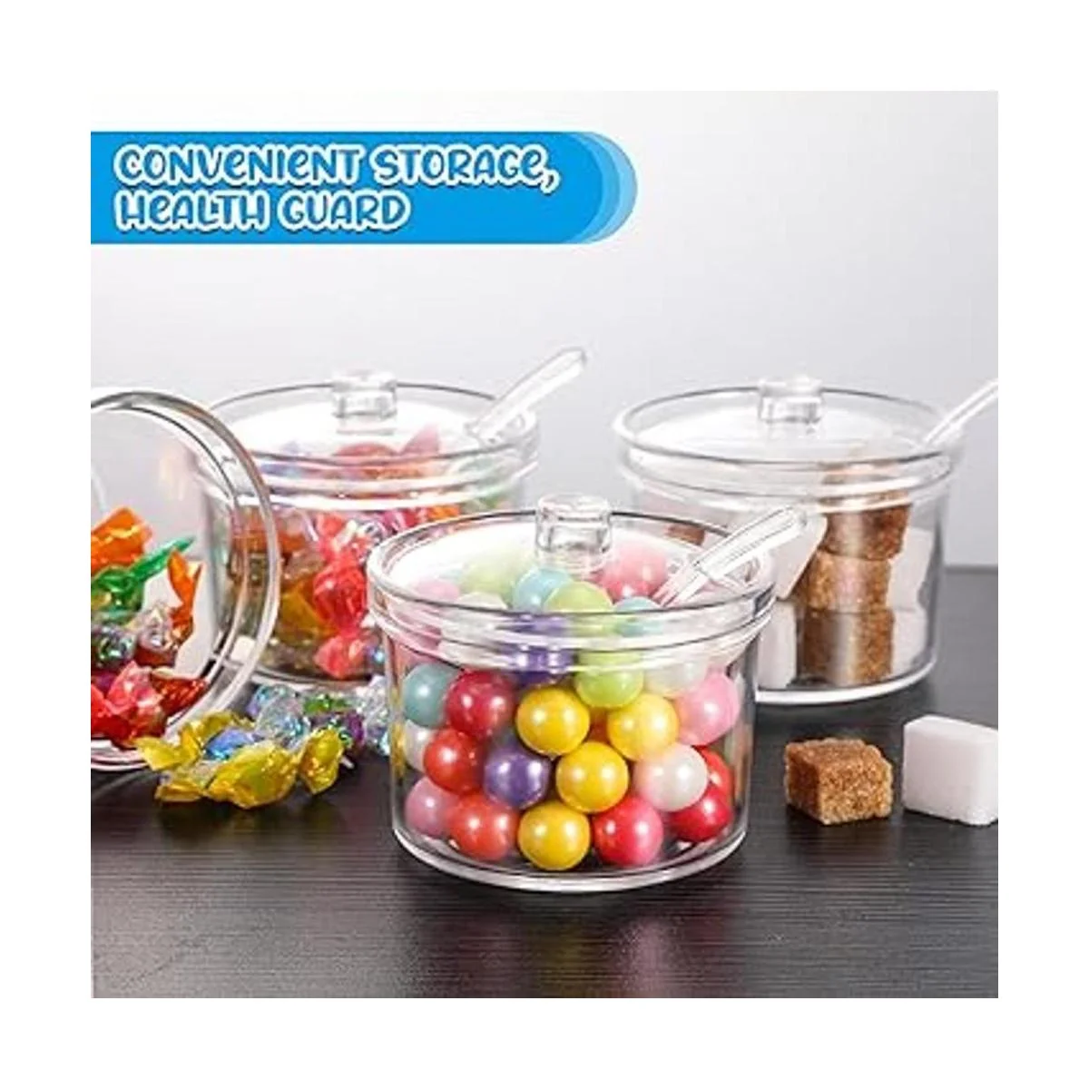 Diseño de seguridad: los azucareros transparentes con tapa son hermosos en apariencia, fáciles de usar y no tienen que preocuparse por rascarse las manos, lo que puede evitar que tu familia y amigos se preocupen