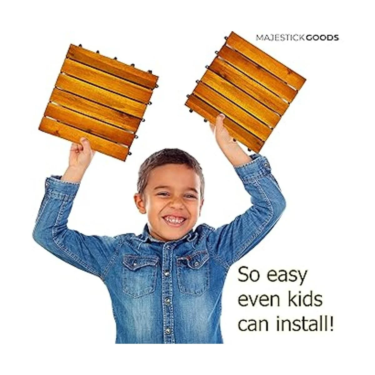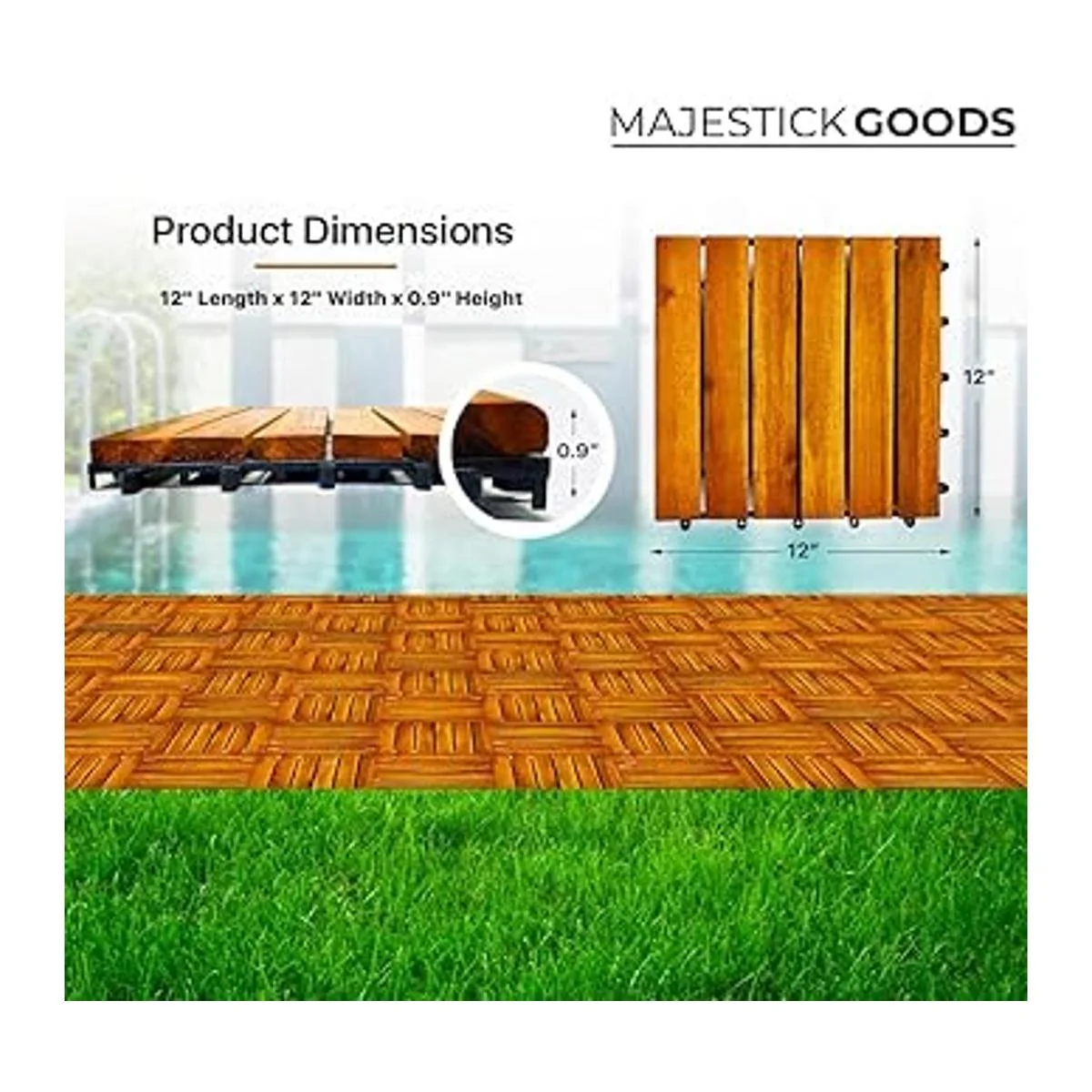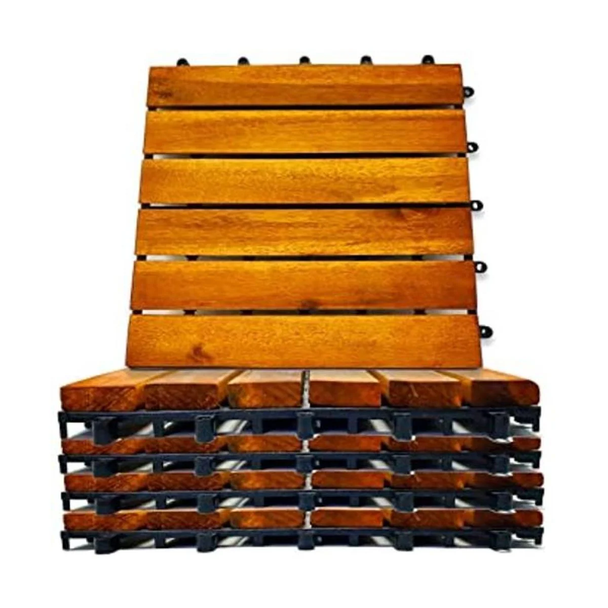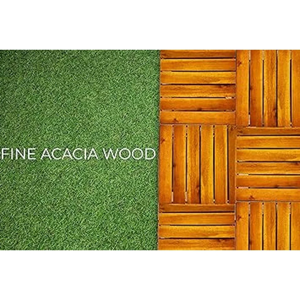 Azulejos de cubierta entrelazados, paquete de 8 unidades, suelos de madera a presión Suelo de madera de acacia de 12 x 12 pulgadas para exteriores para patio Azulejo de suelo clic para terrazas al aire libre Balcón, suelo de parquet de madera