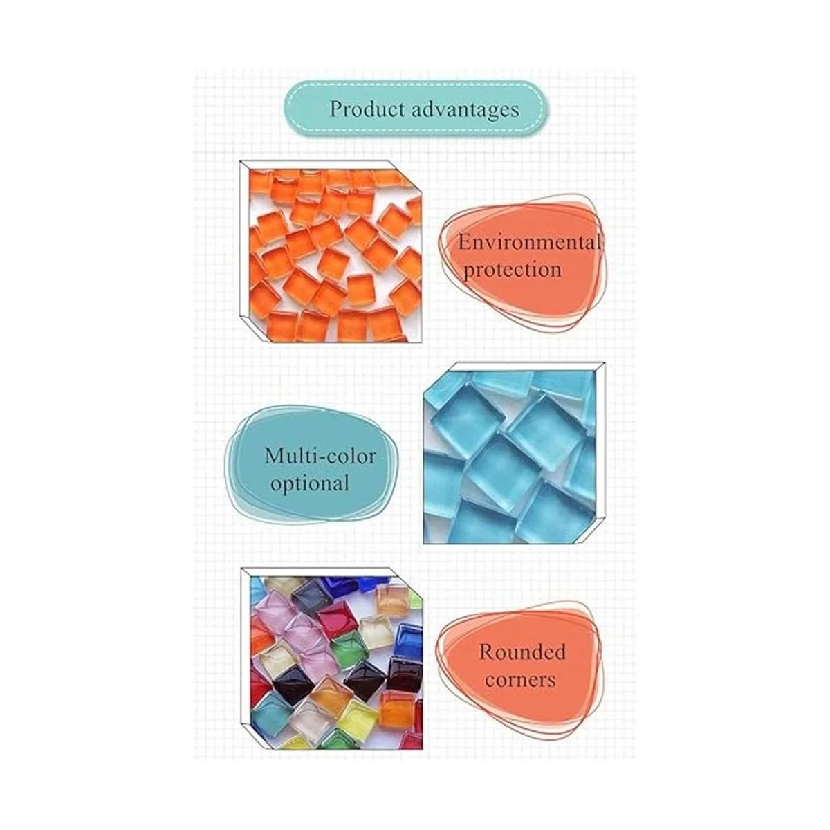 Características: mosaicos con purpurina, la superficie es lisa, no daña tus manos, grosor uniforme, más brillante y hermoso a una distancia más cercana; el color de estos mosaicos nunca perderá